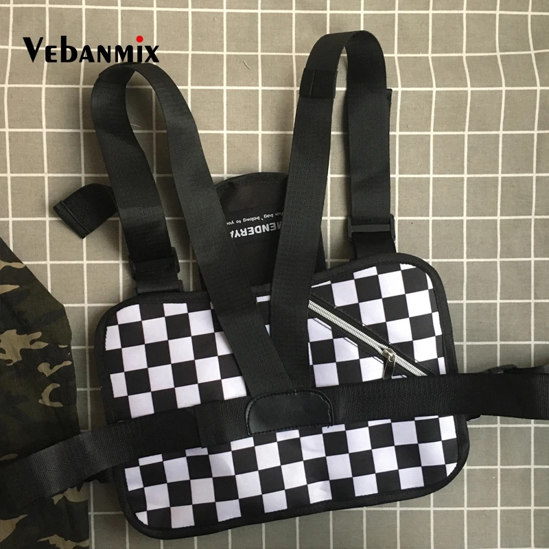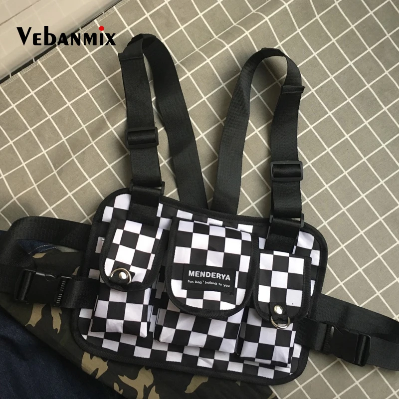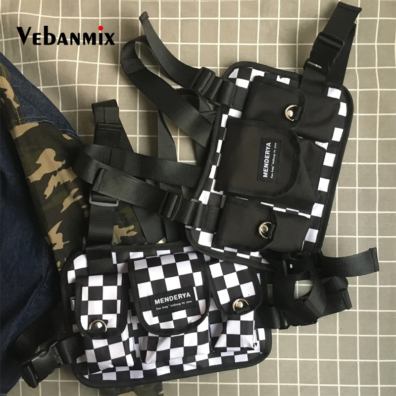 Модная нагрудная сумка в черно-белую клетку для мужчин, уличная одежда в стиле Канье Уэста, хип-хоп, Мужская тактическая нагрудная жилетка, мешок для ожидания