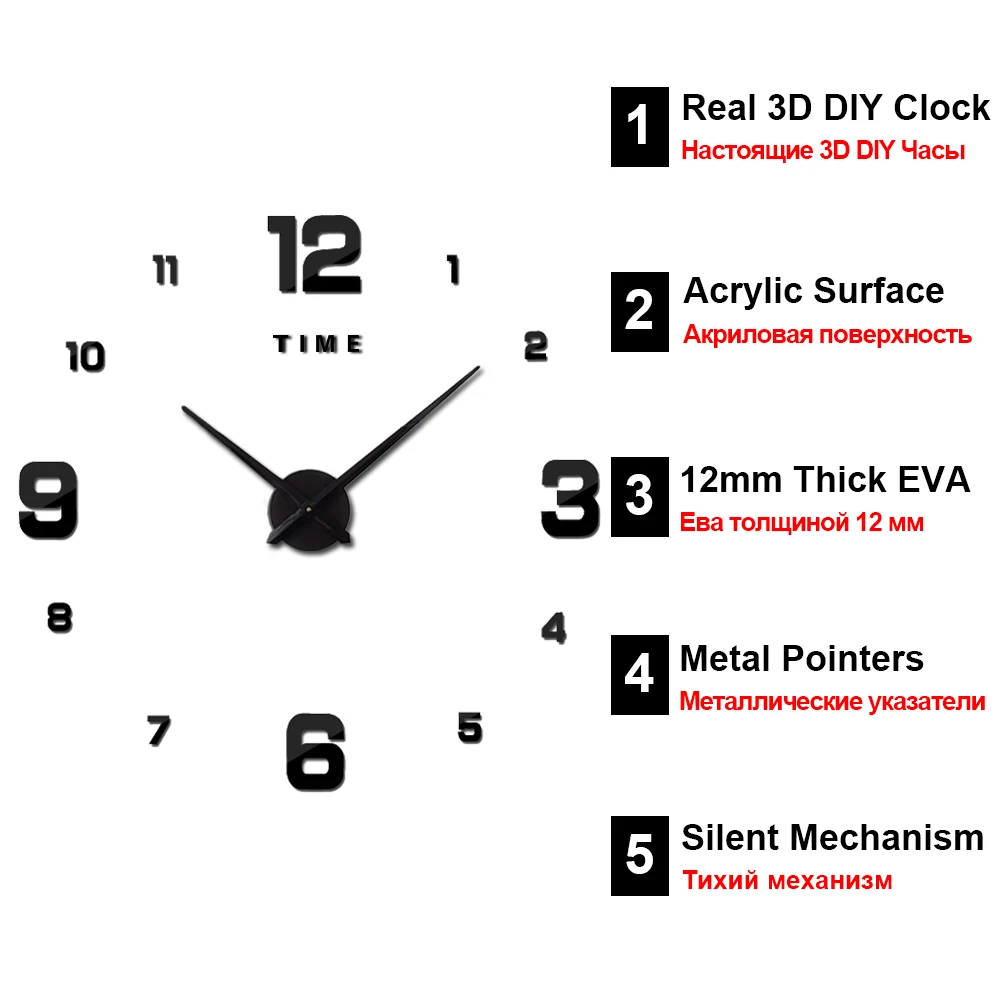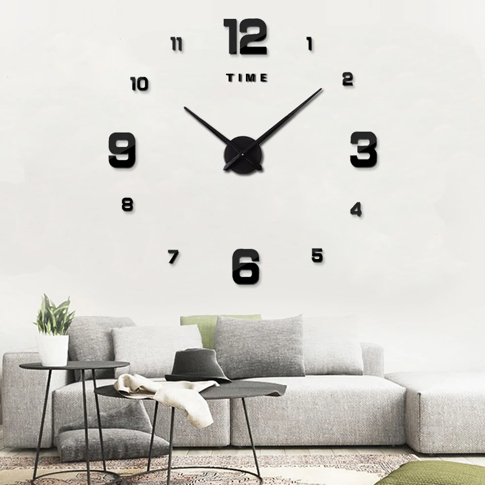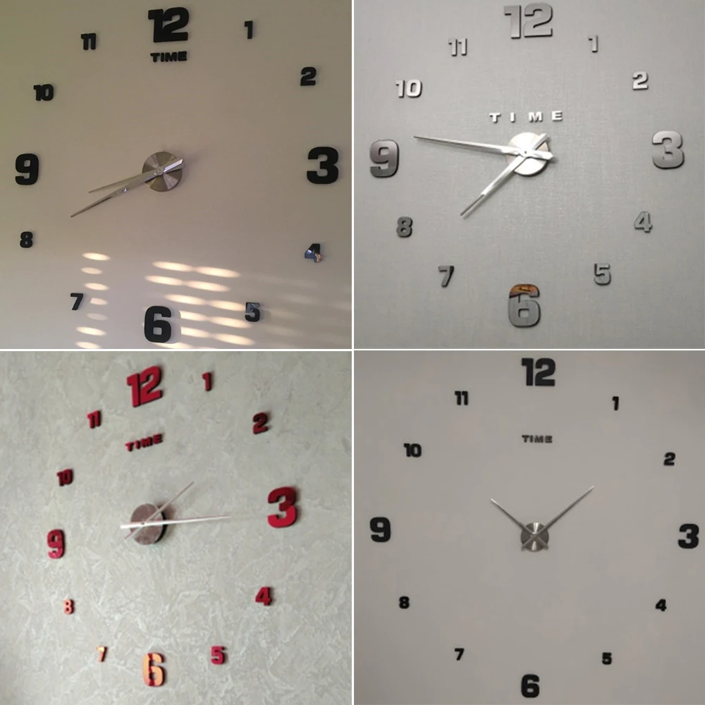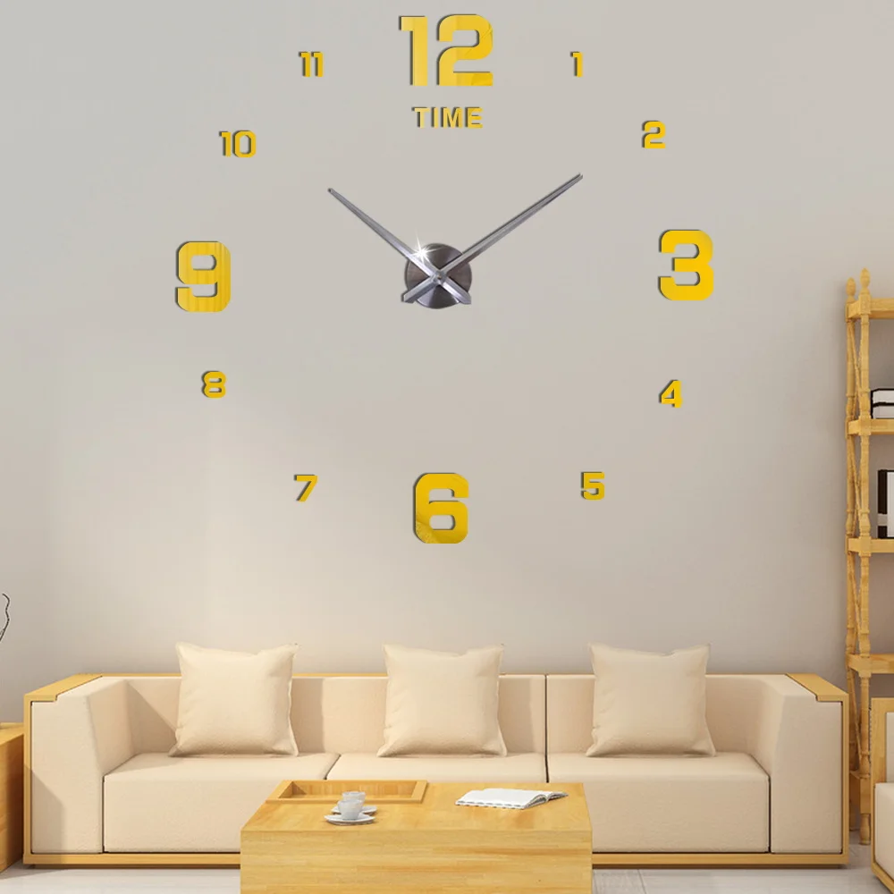 3D DIY большие настенные часы современный дизайн бесшумные большие декоративные цифровые часы акриловые зеркальные наклейки большие настенные часы