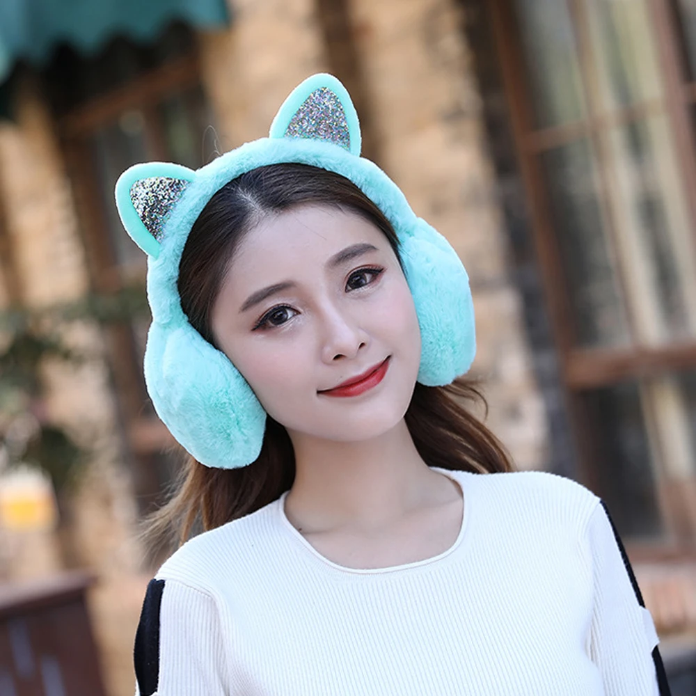 Женские меховые зимние беруши для девушек, наушники с кошачьими уша...