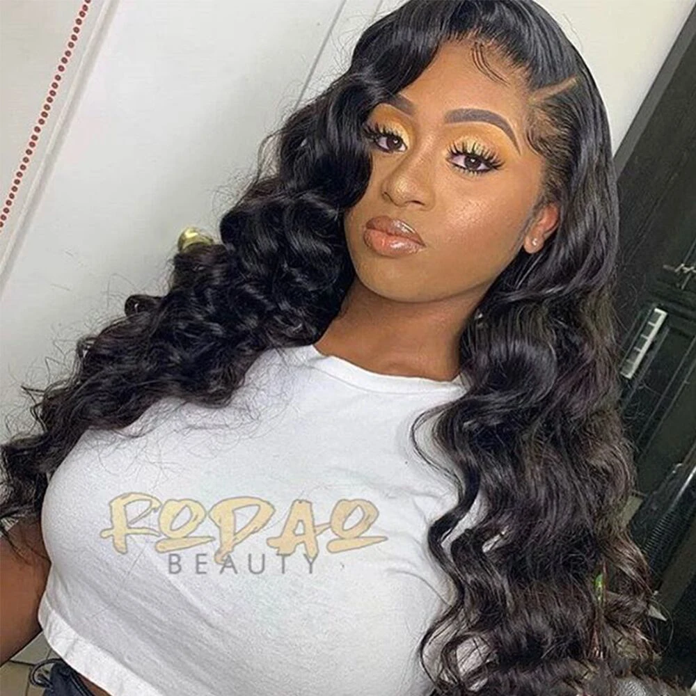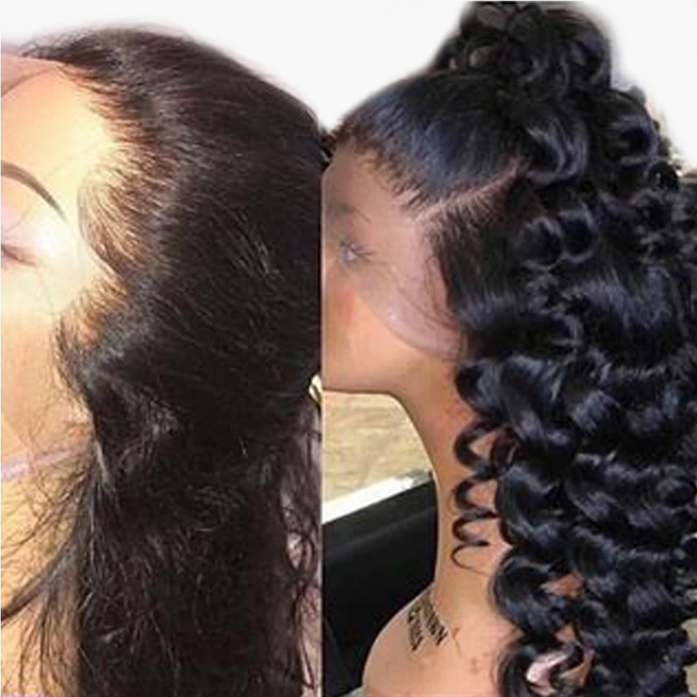 Парик с объемными волнистыми волосами, бесклеевые парики с полным покрытием, 180 плотность, черный парик для женщин, человеческие волосы с волосами ребенка, натуральный парик, волосы Remy, Aimoonsa