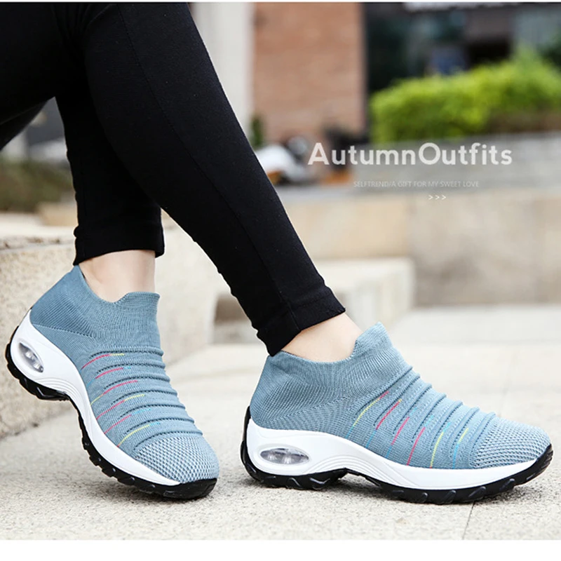 Сезон весна-лето; Женские кроссовки; Модная повседневная обувь из дышащей сетки; Женские кроссовки на платформе; Черные носки; Кроссовки; Обувь