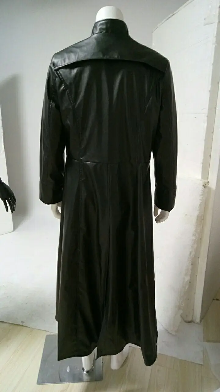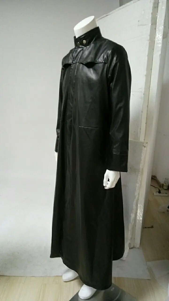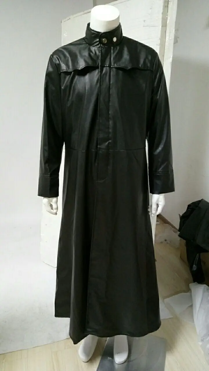 Длинный черный кожаный тренчкот Matrix Neo плащ, костюм для косплея на заказ