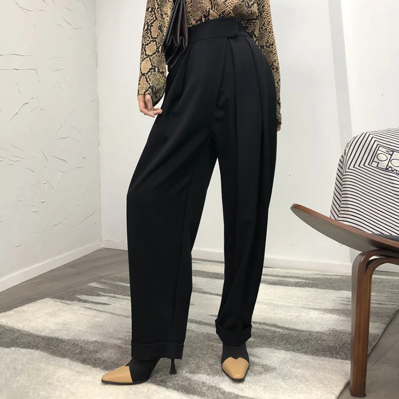 TWOTWINSTYLE повседневные Черные шаровары для женщин с высокой талией свободные широкие брюки женские 2022 весенние корейские модные