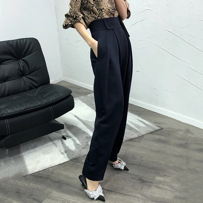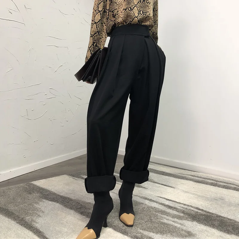 Женские свободные брюки TWOTWINSTYLE, черные брюки с высокой талией...