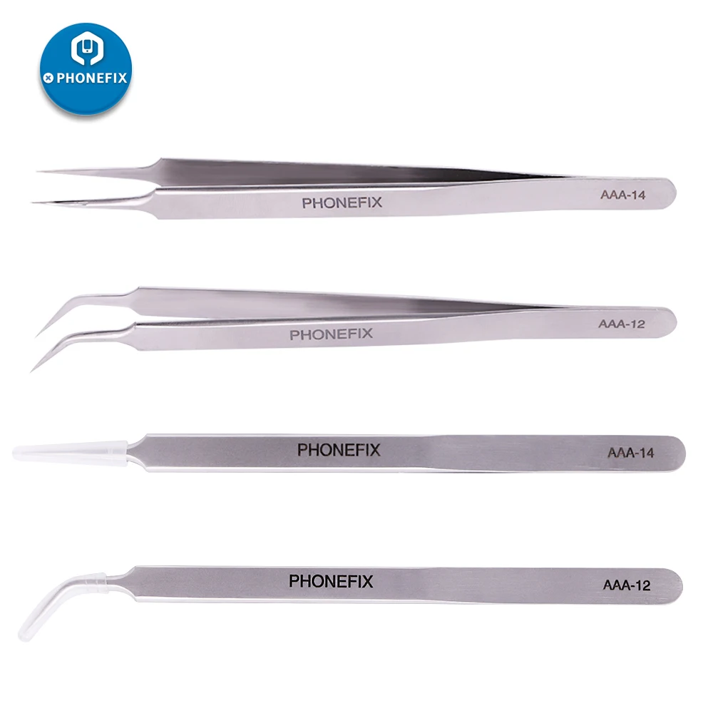 PHONEFIX Пинцет из нержавеющей стали, электронный прямой Изогнутый пинцет, промышленный пинцет, набор инструментов для удаления волос