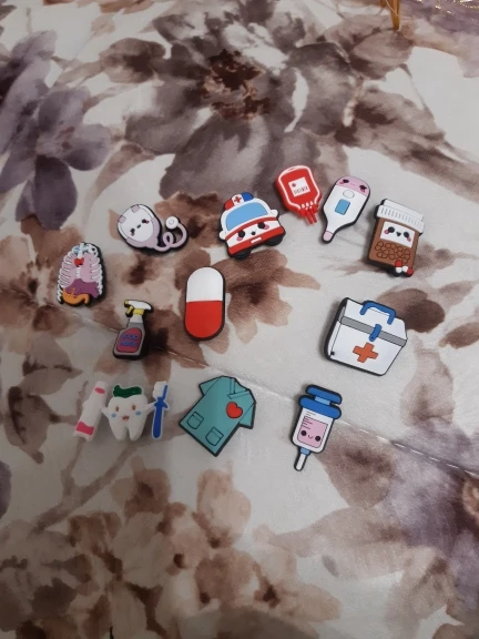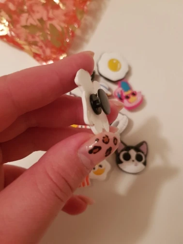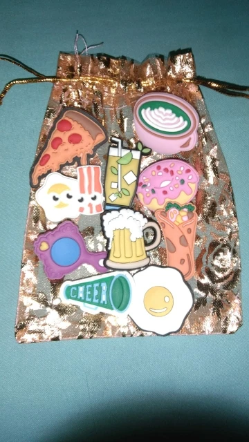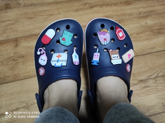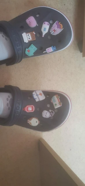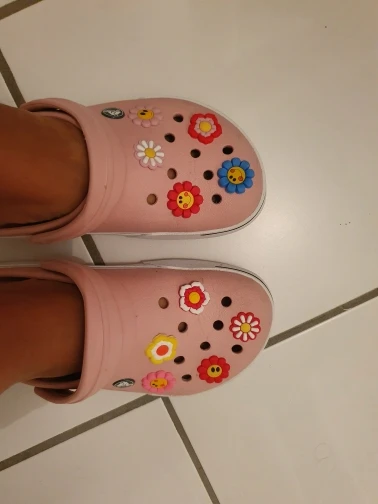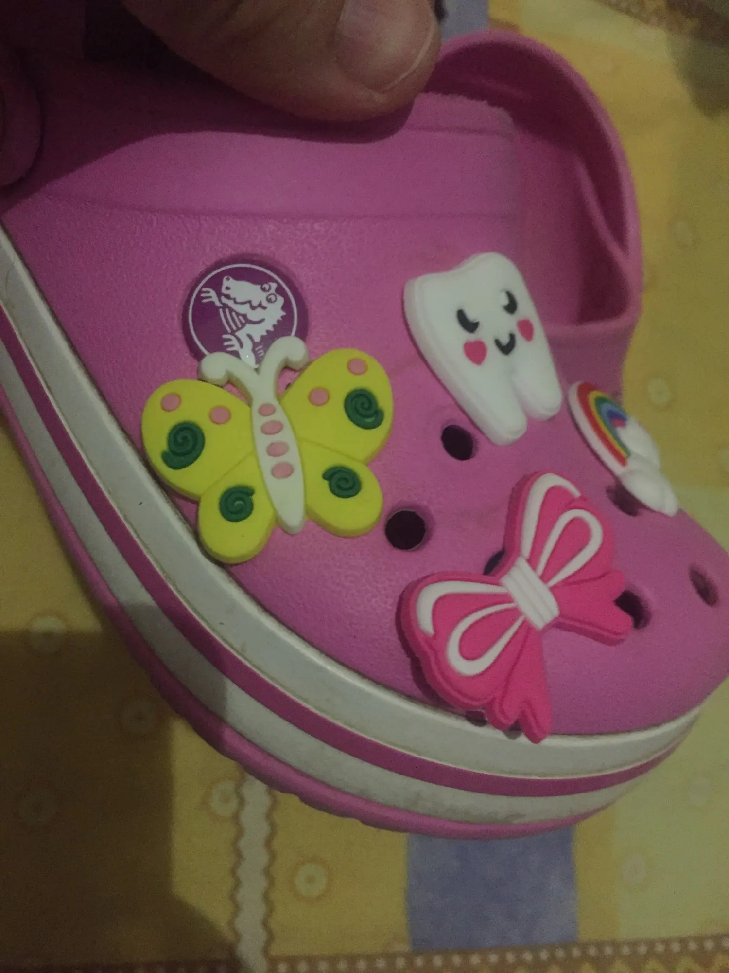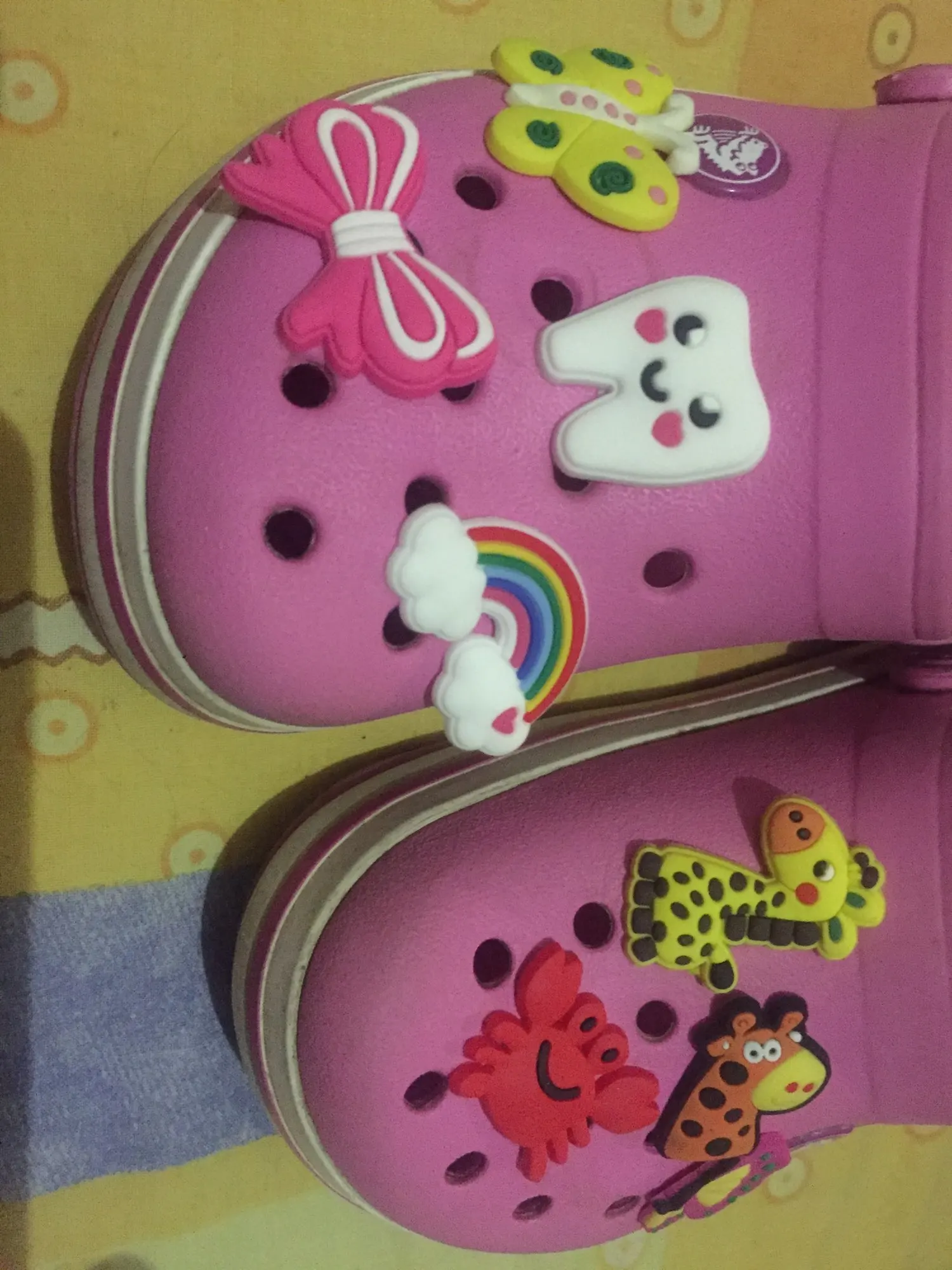 ХОРОШИЕ, яркие, очень плотно садятся на кроксы, потерять их исключено