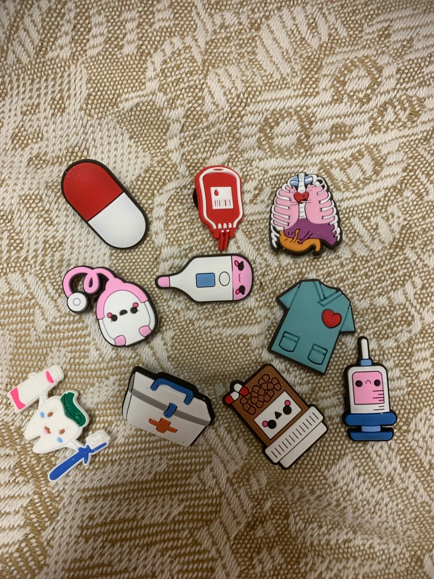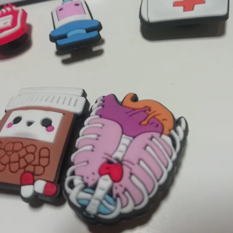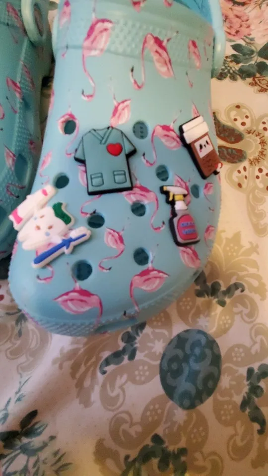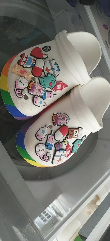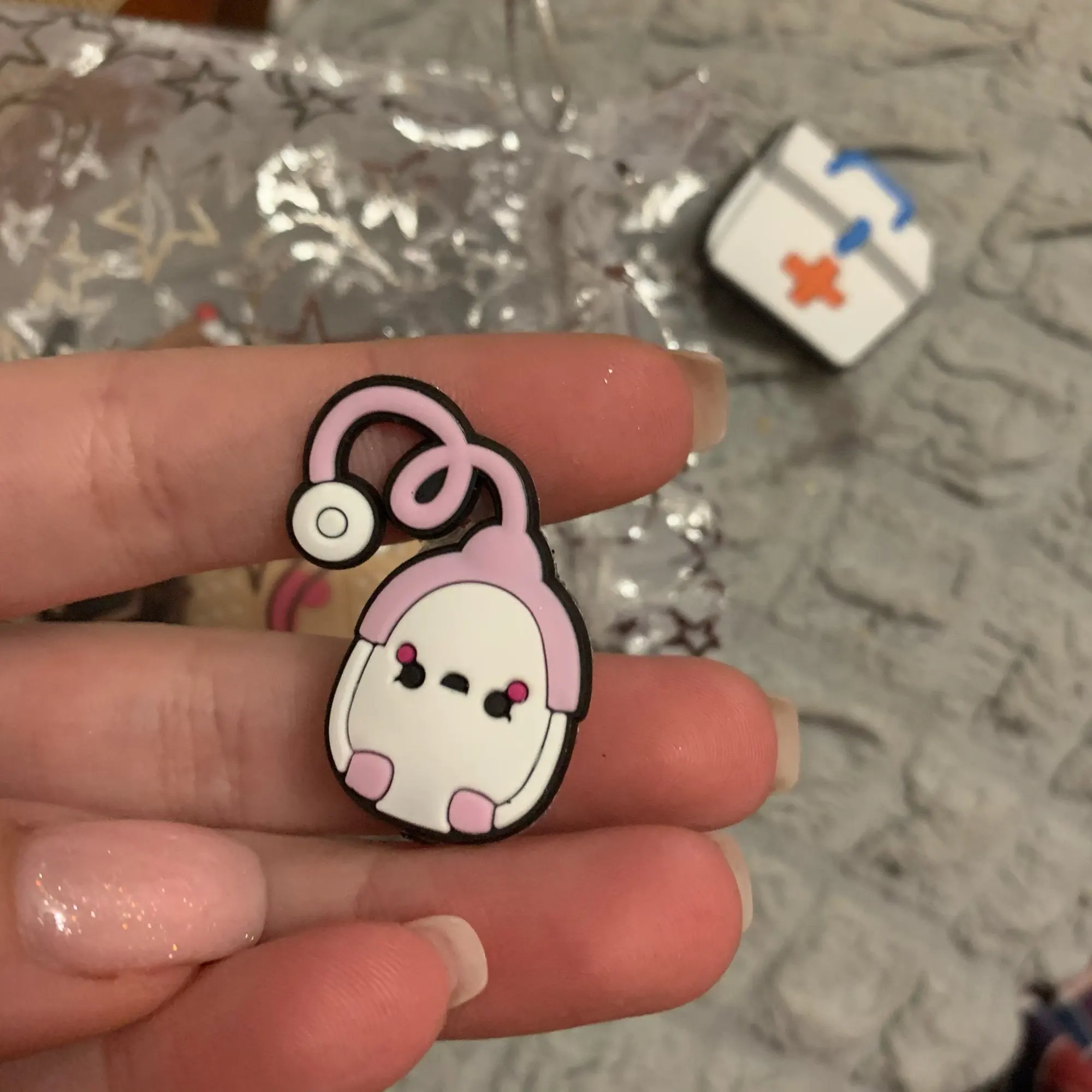 ХОРОШИЕ, яркие, очень плотно садятся на кроксы, потерять их исключено