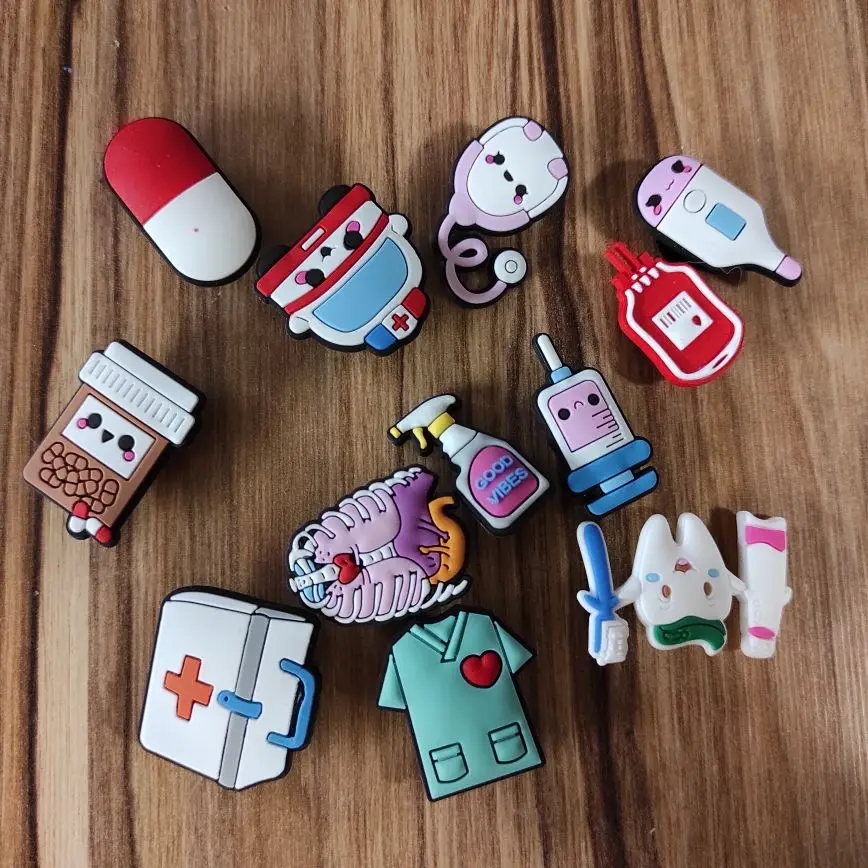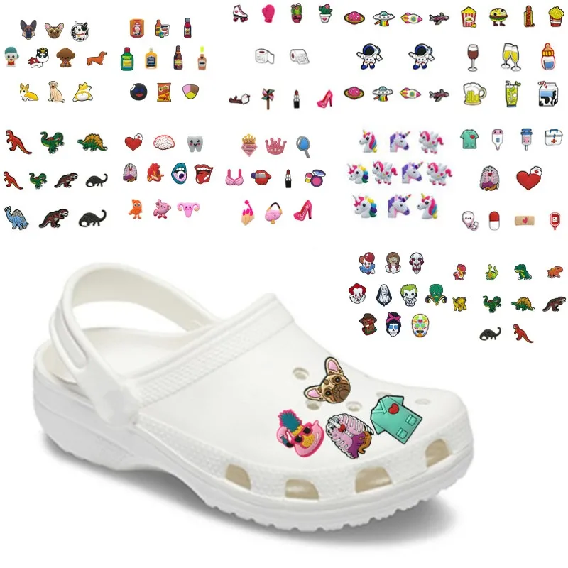 Симпатичные украшения для обуви из ПВХ, в виде животных, собак, рыбок, единороги, фрукты, продукты, хрустальные украшения, детский подарок, 10 шт.лот