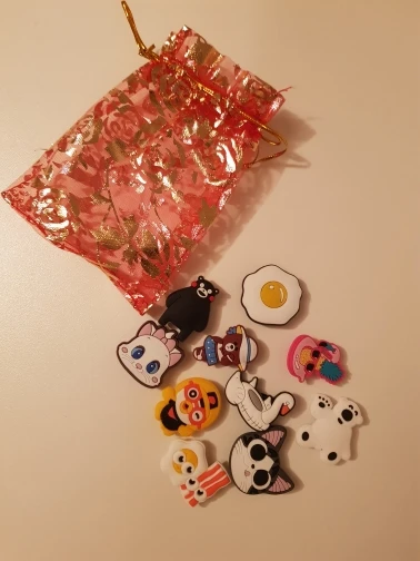 товар полностью соответствует описанию, 10 шт как на картинке, продавец положил в мешочек из органзы, мелочь, а приятно! отправил быстро, отслеживалось, дошло до Саратовской области за 3 недели! с продавцом не общалась, не было на то причин! качество джибитсов хорошее, резина качественная, все аккуратно, не пахнет.