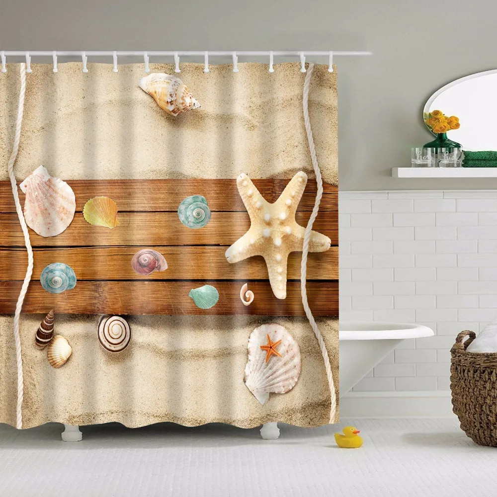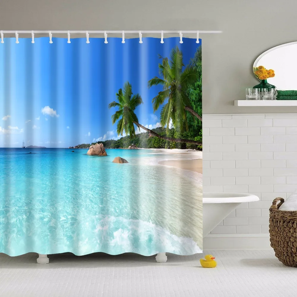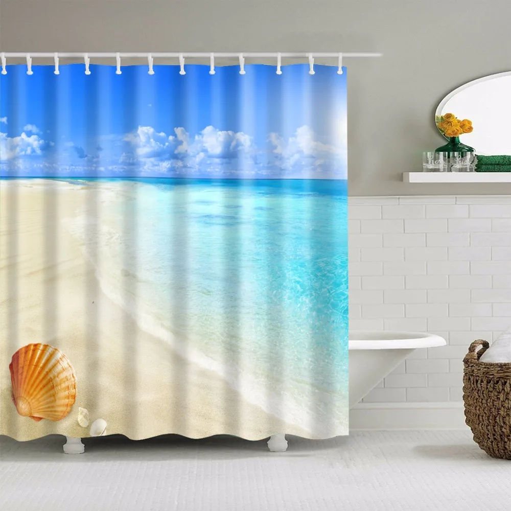 Морской живописный пляжная шторка для душа с принтом s, занавеска для ванной, Frabic, водонепроницаемый полиэстер для ванной комнаты с крючками