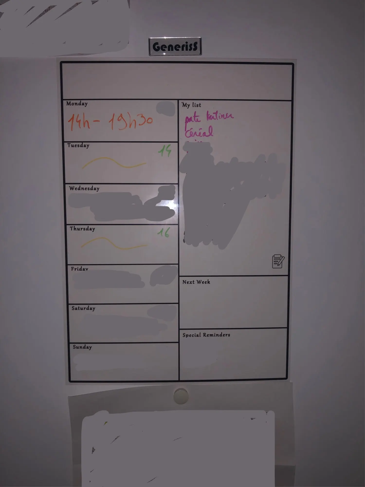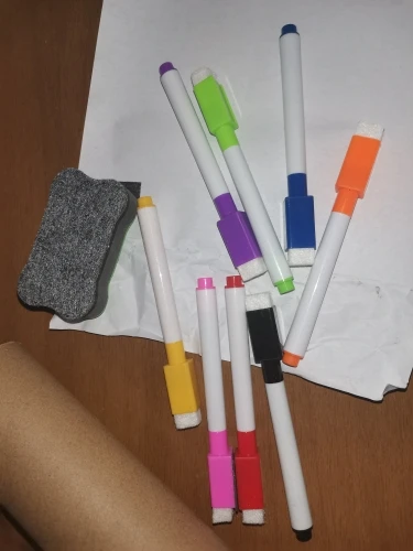 Это оправдало ожидания. Он очень хорошо прилипает к холодильнику, не оставляя пузырьков или складок. Он поставляется с большим количеством цветных маркеров и ластиком. И все пишет и стирается идеально, хотя это оставляет неделю...