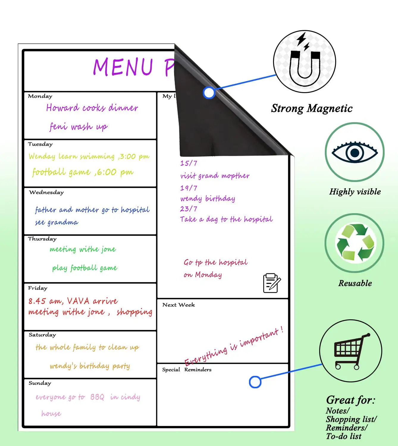 Магнитная доска для еженедельного планировщика, еженедельная доска для холодильника, доска с календарем, технология устойчивости к календарю для всей семьи, бытовая, искусственная