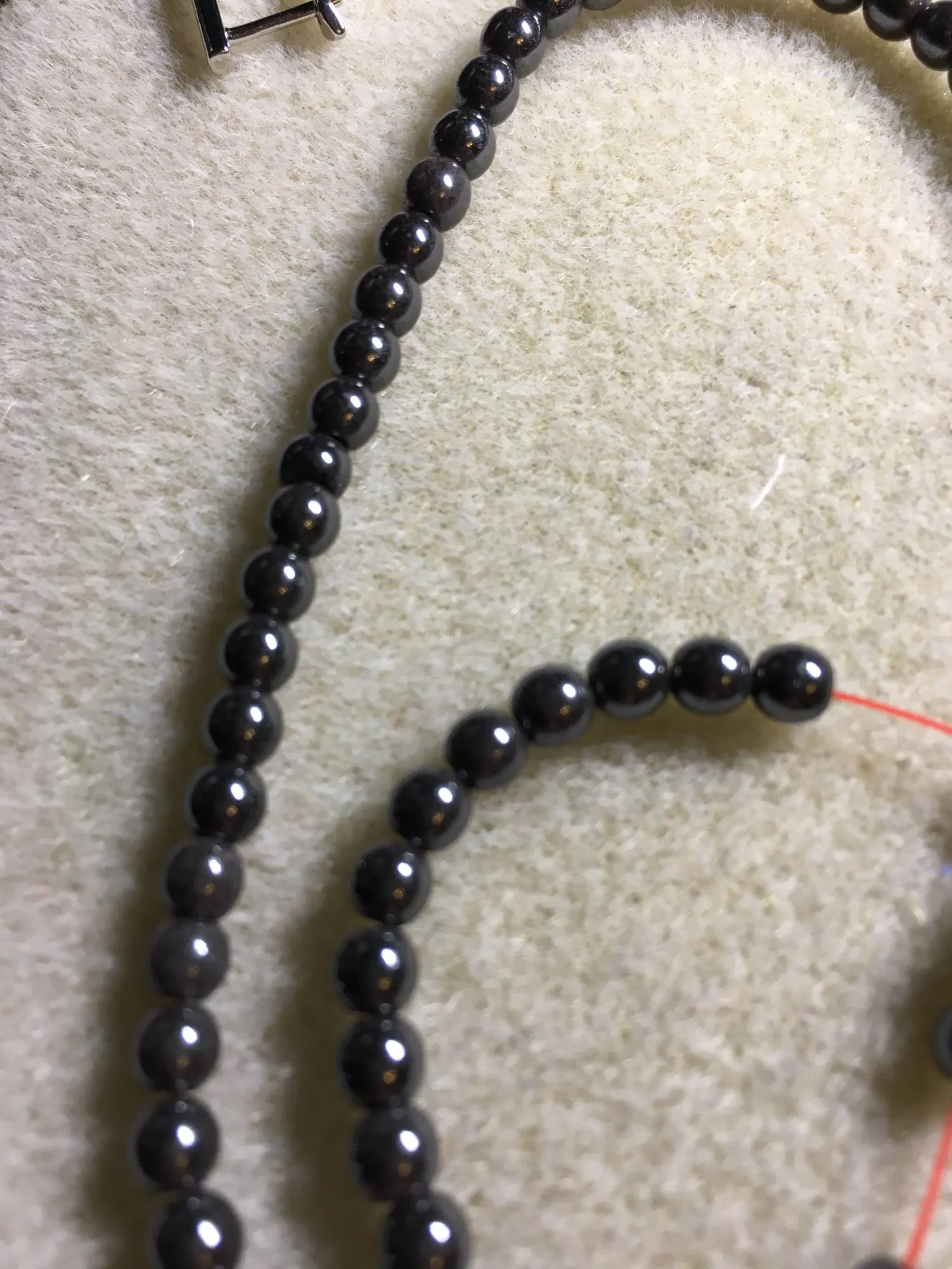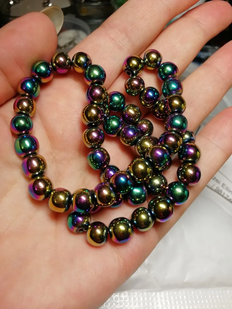 Это не гематит, просто краска, причём очень плохо покрашено. Качество ужасное, из 50 бусин, может штук 10 наберётся сносных, остальные все с дефектами и непрокрашенными пятнами. Написала продавцу, что товар некачественный, он ответил, что бусины повредились при транспортировке ♀️ чего, конечно же, не может быть, потому что это явно заводской брак. Ставлю одну звезду, и то, только за то, что товар приехал за три недели.
