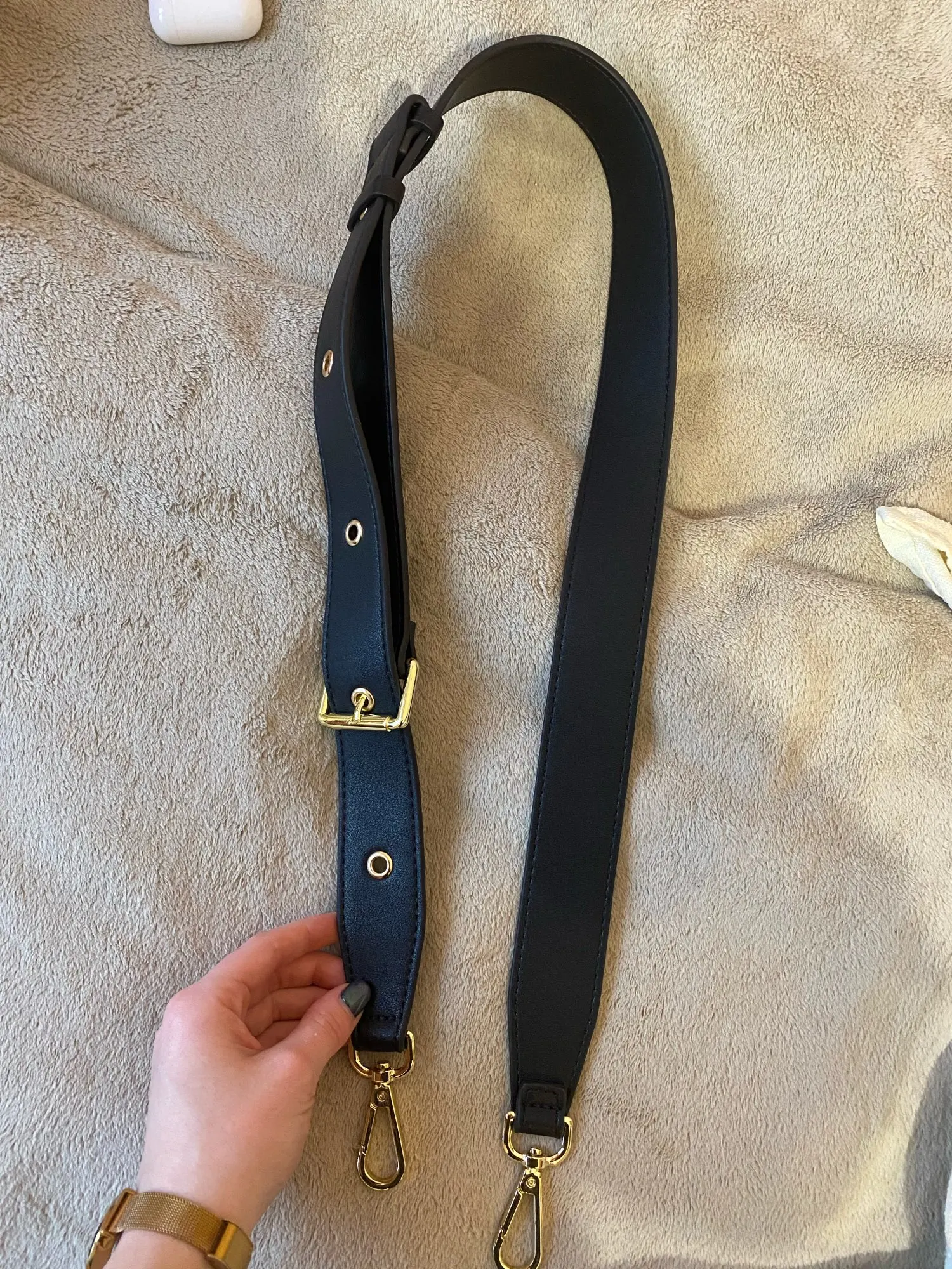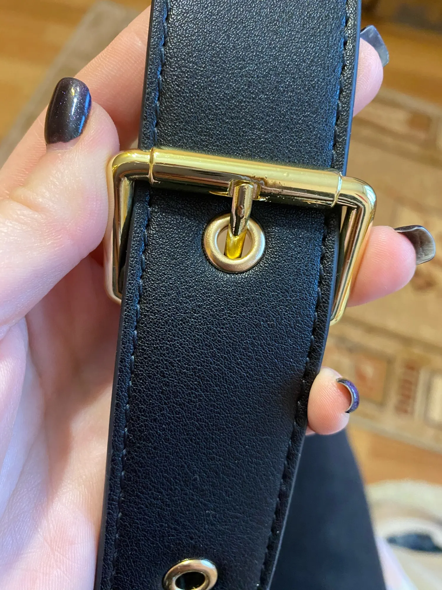 очень довольна покупкой, хороший ремешок на сумку с отлично фурнитурой (покупала в ярком золотом цвете) как раз есть сумка с такой металлической фурнитурой.