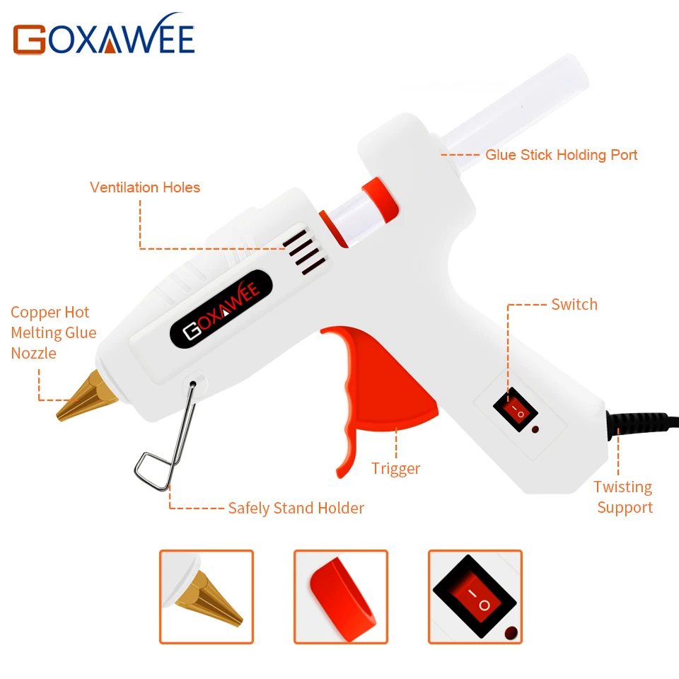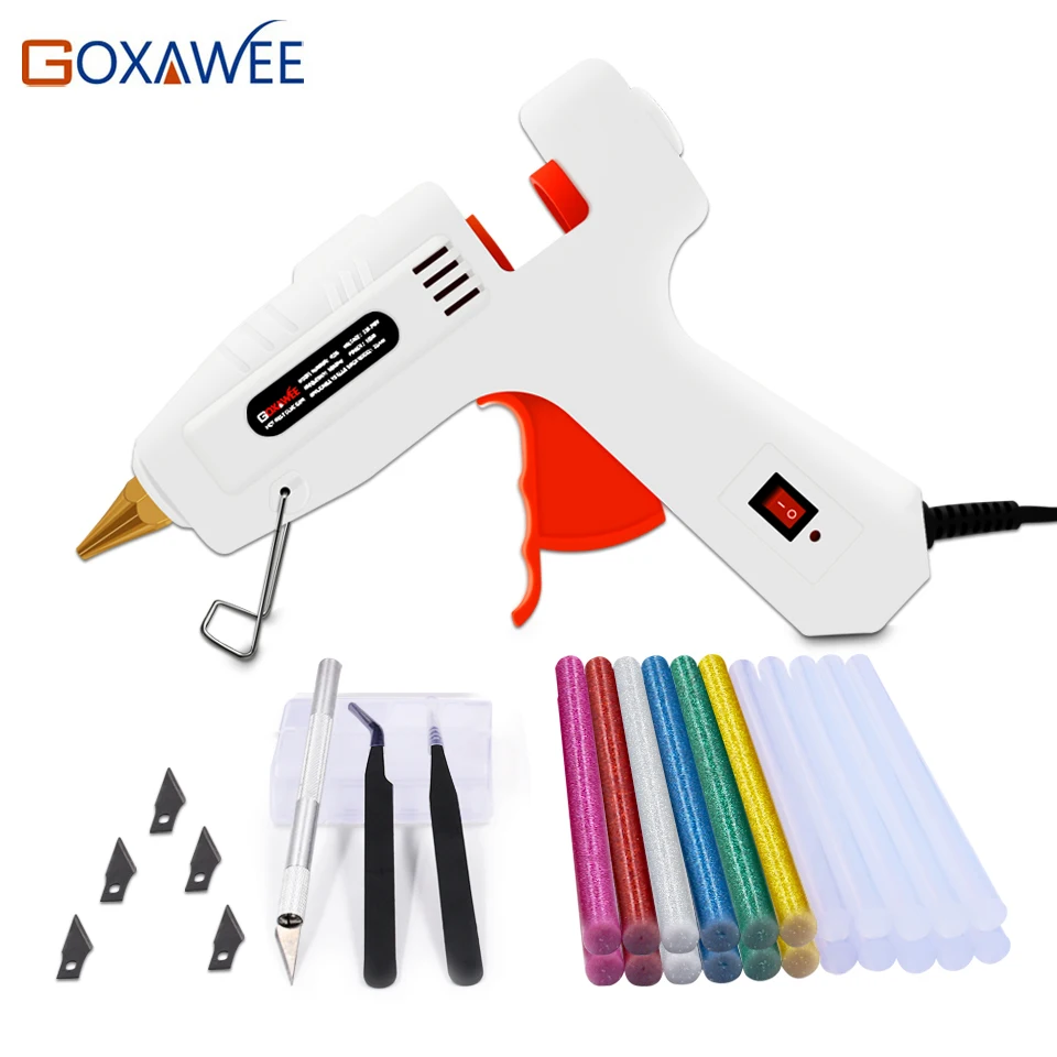 Goxawee Профессиональный горячего расплава клея пушка набор с 22 шт. горячего расплава клея пушка палочки медные наконечники и подставка для ножей для категория "сделай сам"