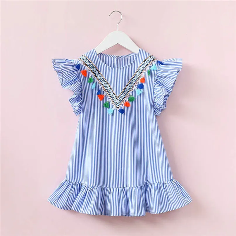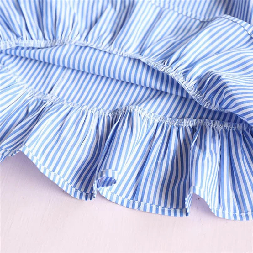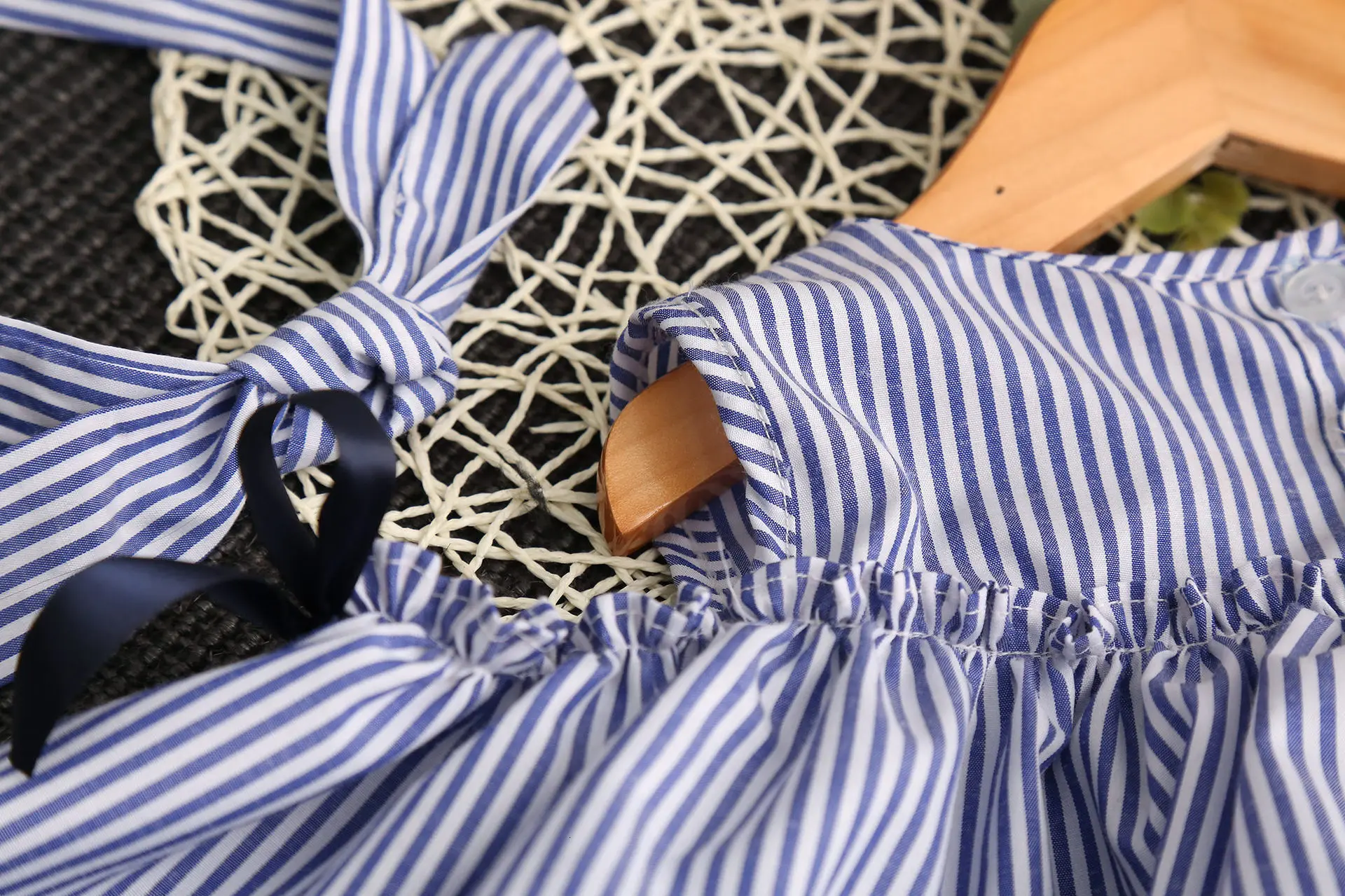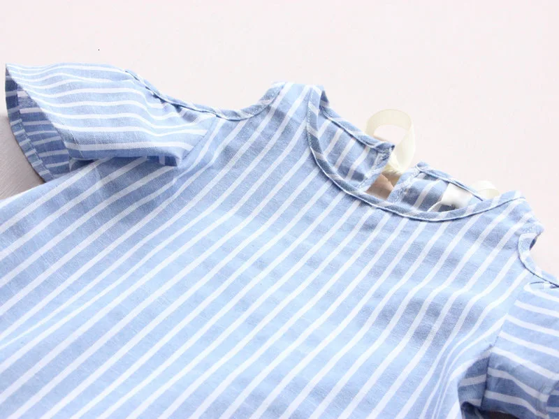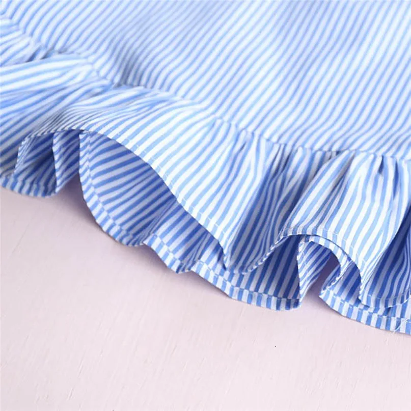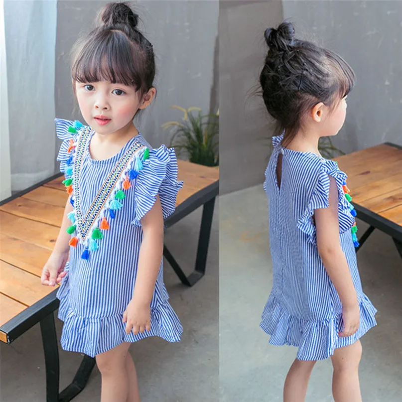 Платье для девочек, летнее платье для маленьких девочек, милая одежда для дня рождения, вечерние платье в синюю полоску с открытыми плечами и оборками, 2018