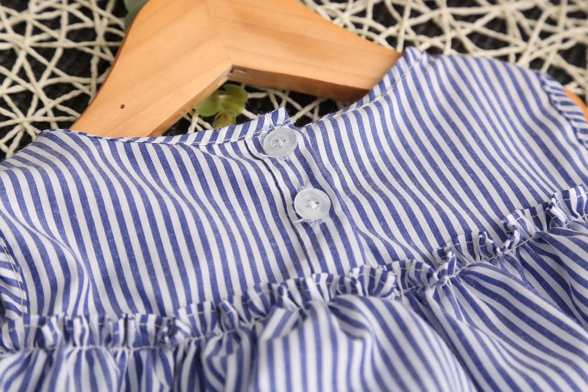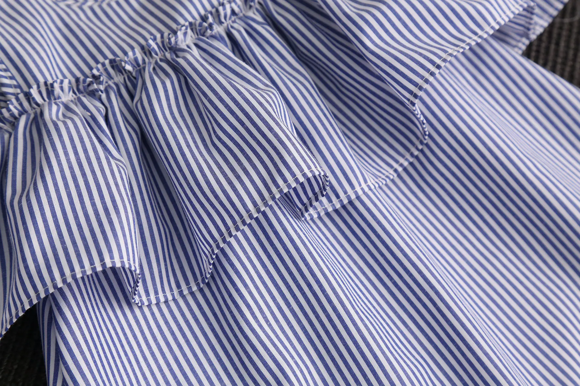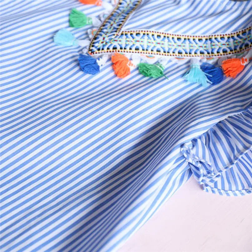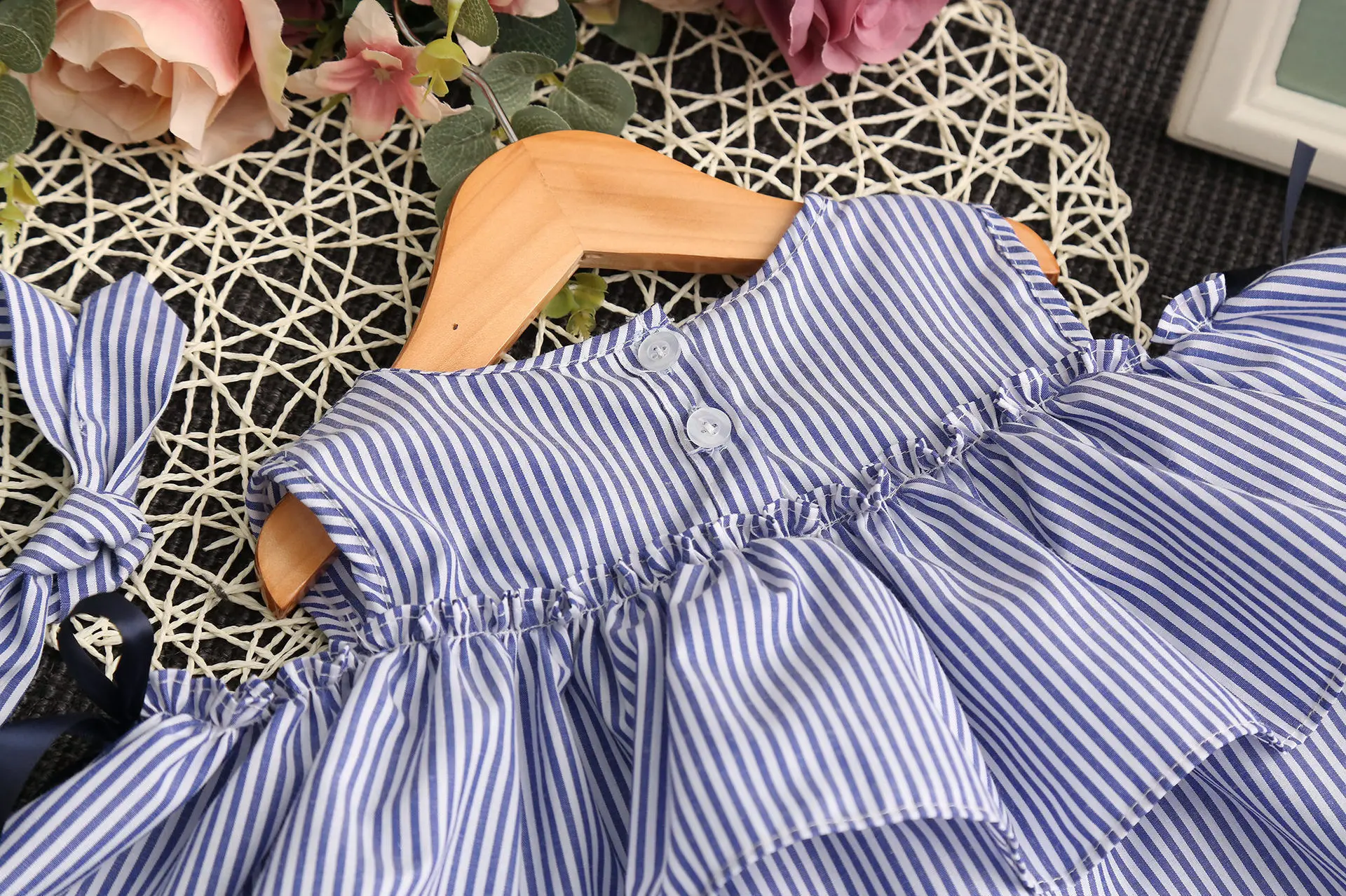 Платье для девочек, летнее платье для маленьких девочек, милая одежда для дня рождения, вечерние платье в синюю полоску с открытыми плечами и оборками, 2018
