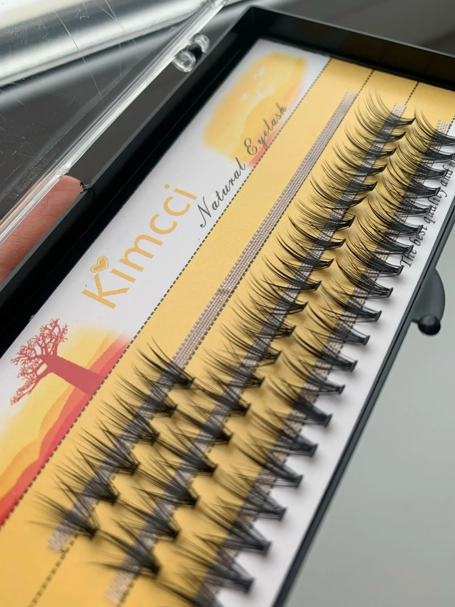 ресницы как всегда стабильны в качестве, выглядят отлично, пучки крепкие, для повседневного эффекта предпочитаю клеить 10 размер, 7-8 пучков на глаз мне хватает. все отлично упаковано, доставка очень быстро! рекомендую товар и продавца! беру уже не в первый раз. очень экономично для домашнего использования.