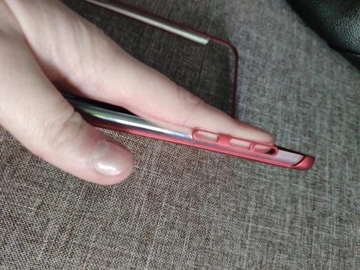 Чехол матовый. Обычный чехол. Ничего особенного. Как за 180 нормально. В районе порта зарядки задирает (давит на палец) и создаёт не комфортные ощущения. Лежит к корпусу не плотно. При сдавлении играет(ходит). Прозрачный пластик точно не советую.