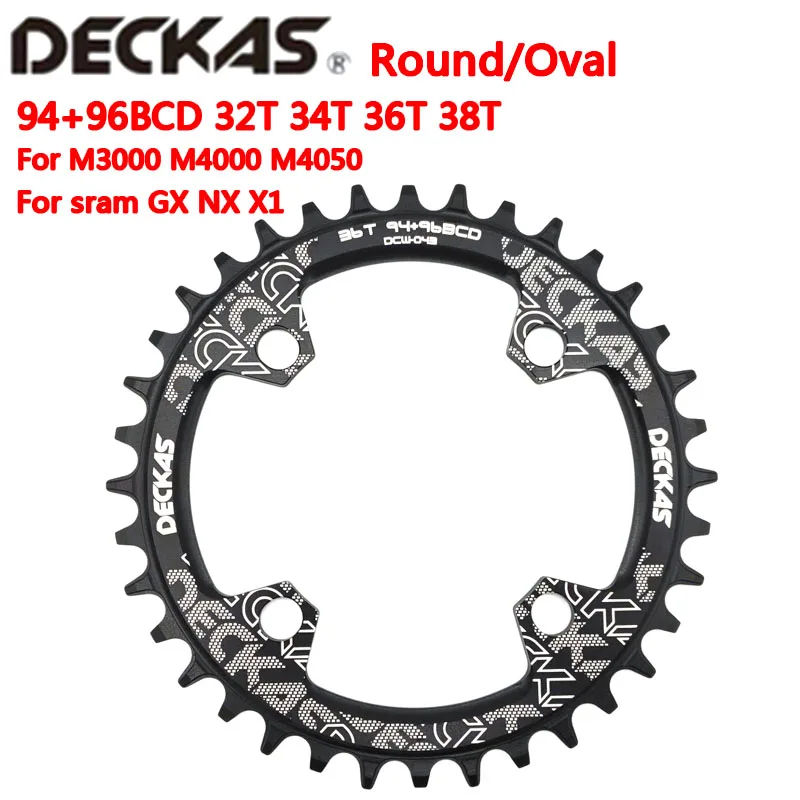 Звездочка велосипедная DECKAS 94 + 96 BCD, круглаяовальная, 32T 34T 36T 38T, для горных велосипедов M4000 M4050 GX NX X1