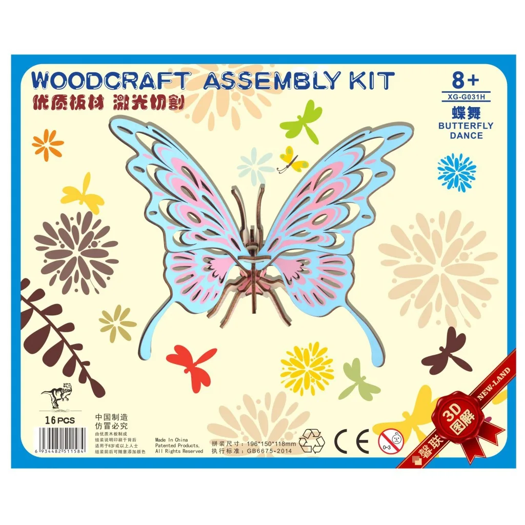 Лазерная резка 3D Деревянный пазл головоломки животные бабочка танцы DIY Ручная сборка детские развивающие деревянные игрушки для детей