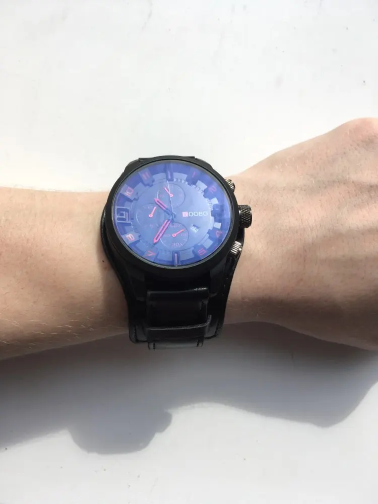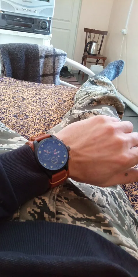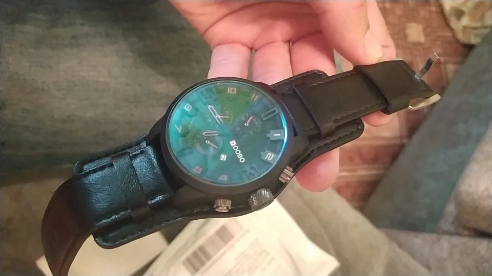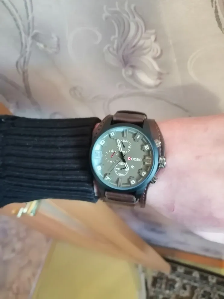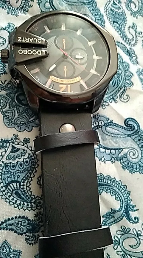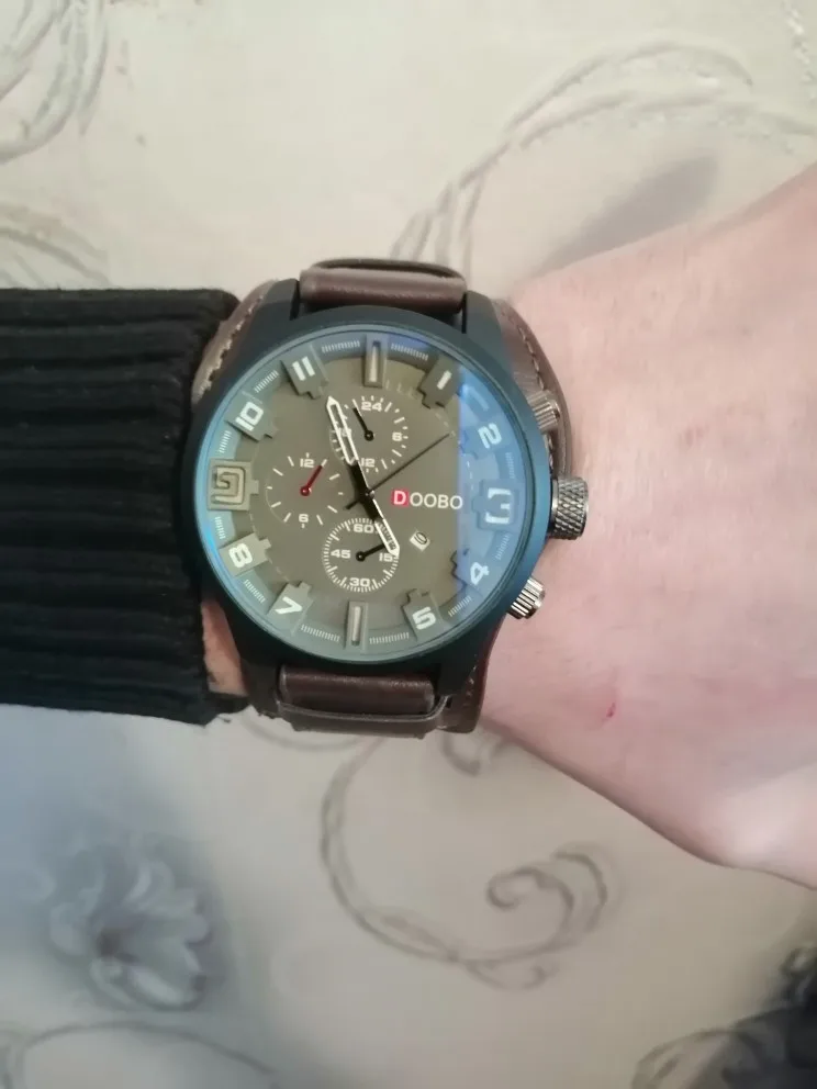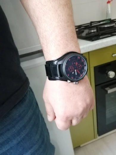 Я очень доволен товаром пришёл товар очень быстро, отслеживался, качество отличное, часы крупные масивные, смотрятся замечательно, ремешок кожа но дешовая, стекло калёное, циферблат не фосфор. Рекомендую, тем более за такую смешную цену!!!