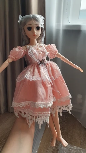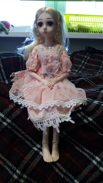 жена довольна , восхищена кукла отличная , суставы все гнуться , платье сменное трехслойное