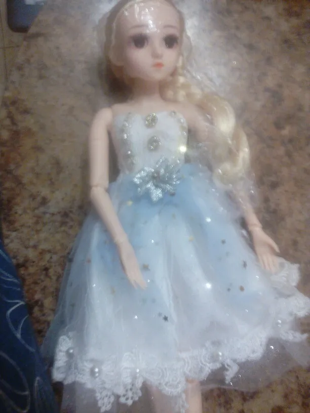 Кукла красивая. Понравилась. Соответствует описанию. Только доставка совсем не быстрая. Первая посылка заказанная 11.11 не пришла, написала продавцу, он дал ссылку на дозаказ за 0,1$, я доплатила и продавец отправил куклу второй раз. Вот вторая пришла. Прямо 31.12. Хорошо что успела, потому что покупалась в подарок на НГ.