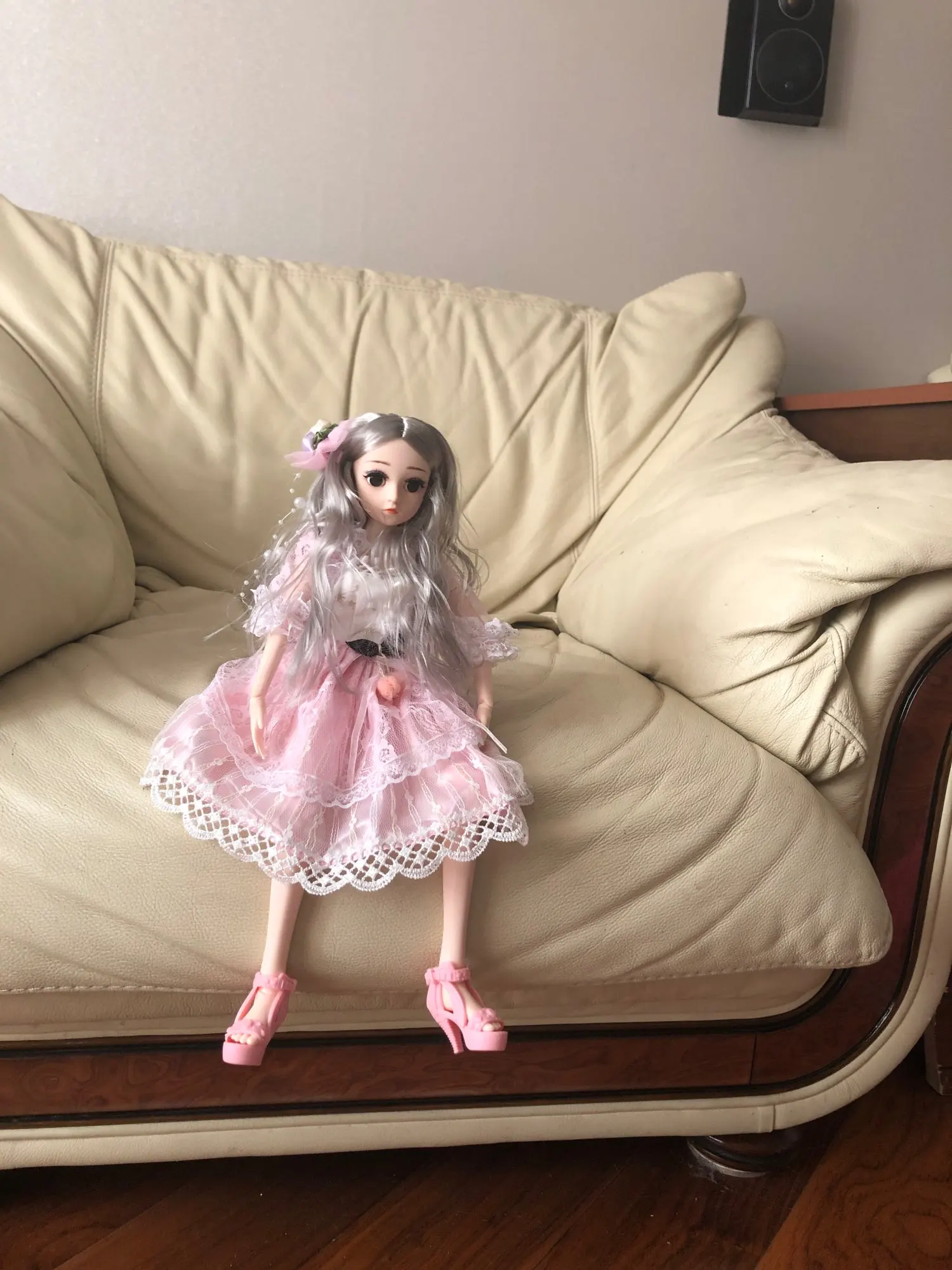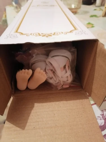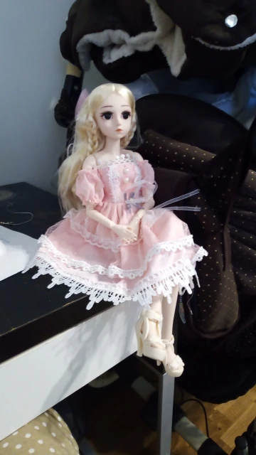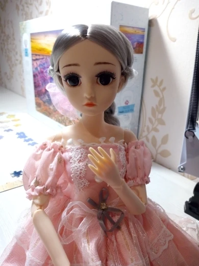посылка пришла быстро за неделю из Москвы, принесли домой. куколка красивая, немного тугие шарниры цвет волос не соответствует заказанному, реснички и приклеенные и нарисованные. шарниры смотрятся немного грубовато, но наверно за эту цену нормально, в целом игрушкой довольна