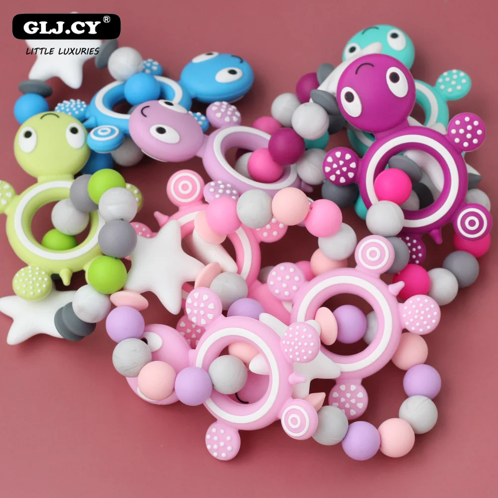 Силиконовый Прорезыватель для зубов, силиконовый браслет для детского душа, Милые силиконовые бусины, зубы, резиновая деталь