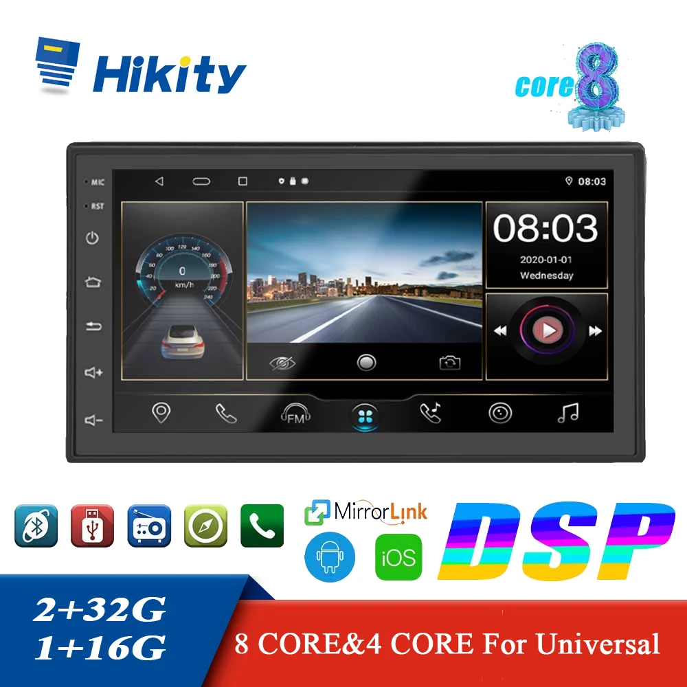 Универсальный Автомобильный мультимедийный плеер Hikity, Android 7 дюймов, 2 Din, сенсорный экран, GPS, радио для Nissan, TOYOTA, Kia, RAV4, Honda, VW, Hyundai