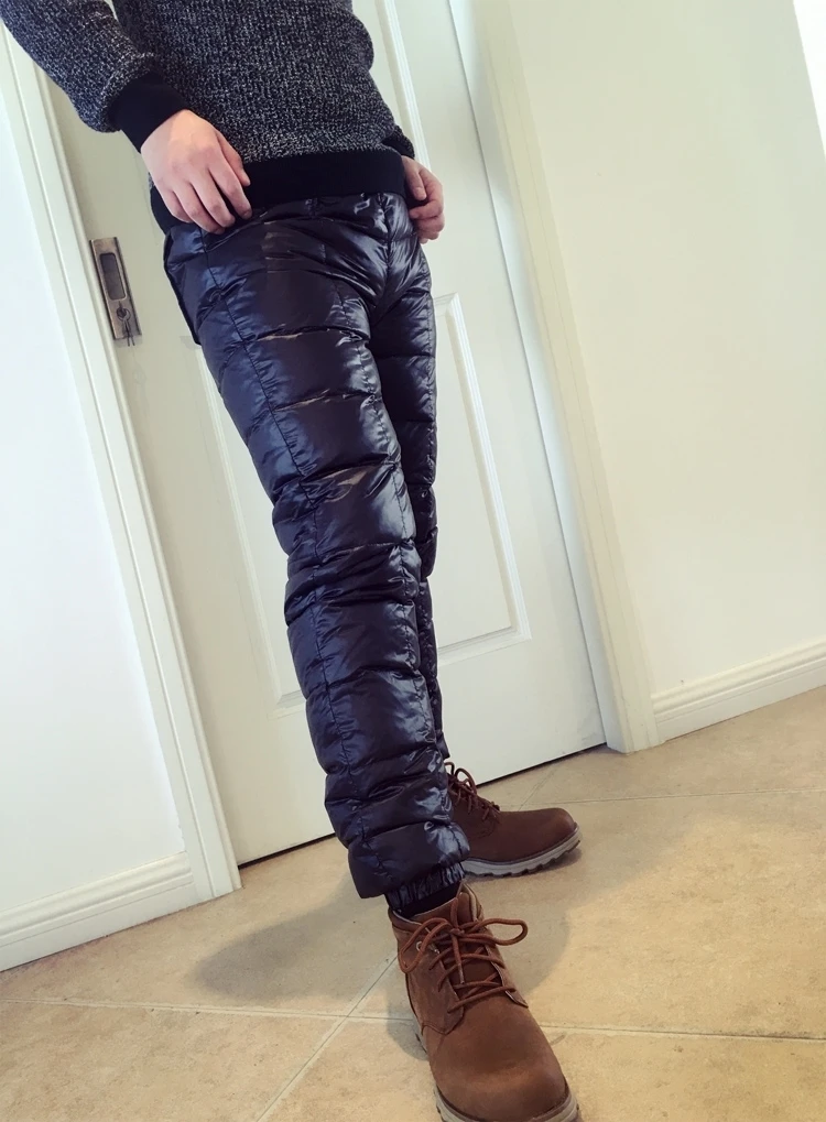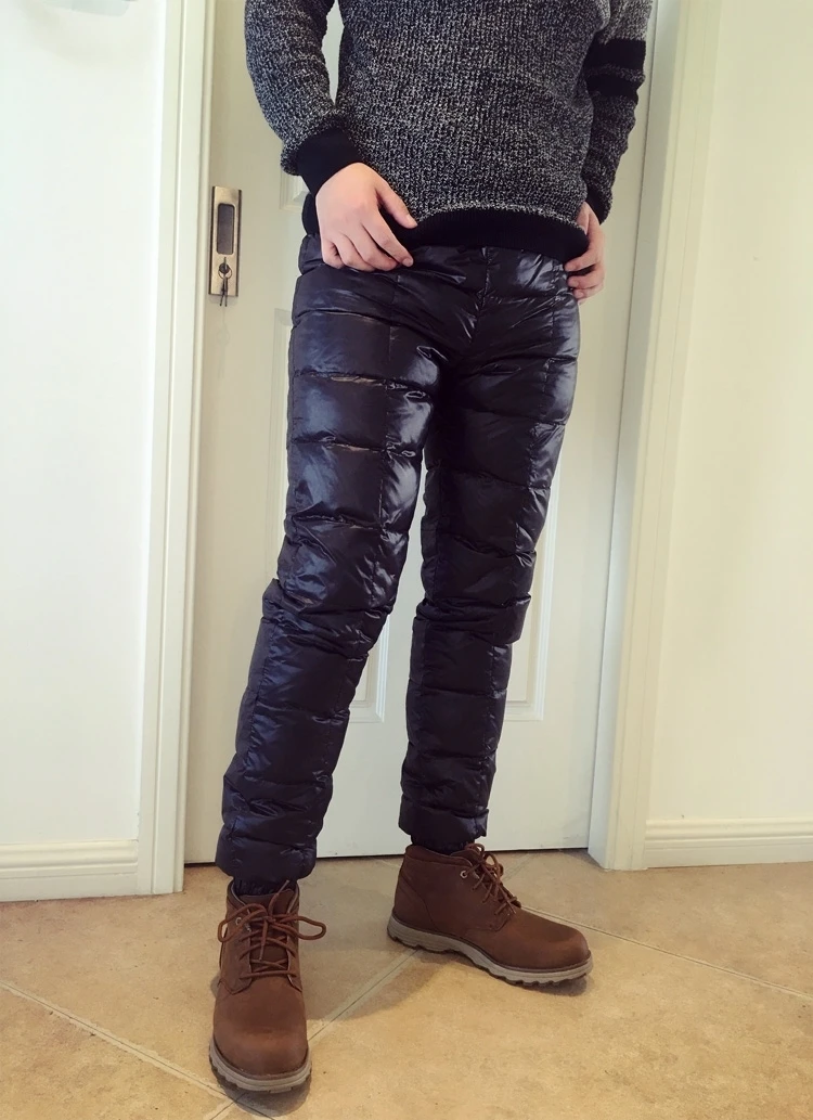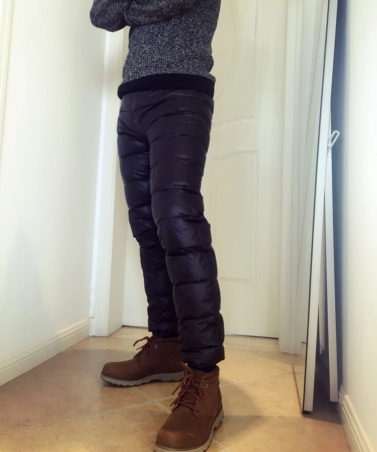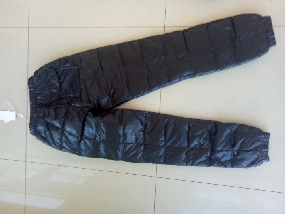 Зимой вам нужны теплые брюки, чтобы защитить ноги и колени, эти брюки заполняют высококачественный белый утиный пух, около 0,6-0,8 кг. Сверхлегкий, водонепроницаемый, ветрозащитный и морозостойкий. Размер от M до 5xl, для веса от 45 кг до 100 кг, мы полагаем, что вы можете выбрать хорошие брюки для себя. Спасибо.