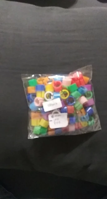 Заказ пришёл быстро. Все целое, без брака. 101шт. в посылке. По размеру для курицы маловаты, если только просто одеть, не защелкивать. Для перепелов подойдёт.