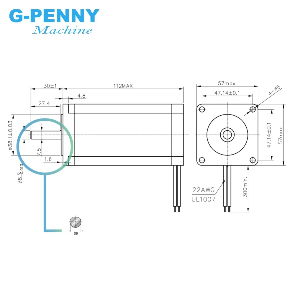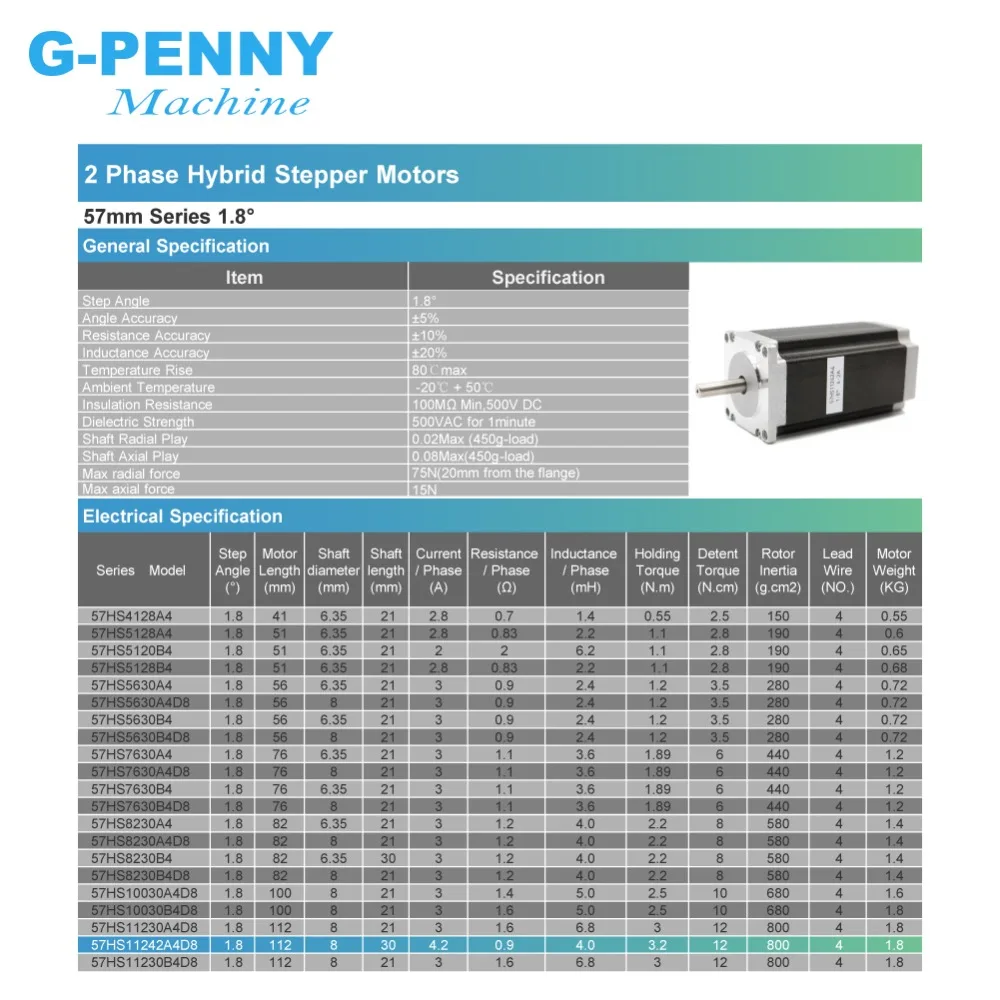 Шаговый двигатель Nema23, 57x112 мм, а, нм, D = 8 мм, с ЧПУ, одновальный, 457Oz-in, для станка с ЧПУ, 3D-принтера
