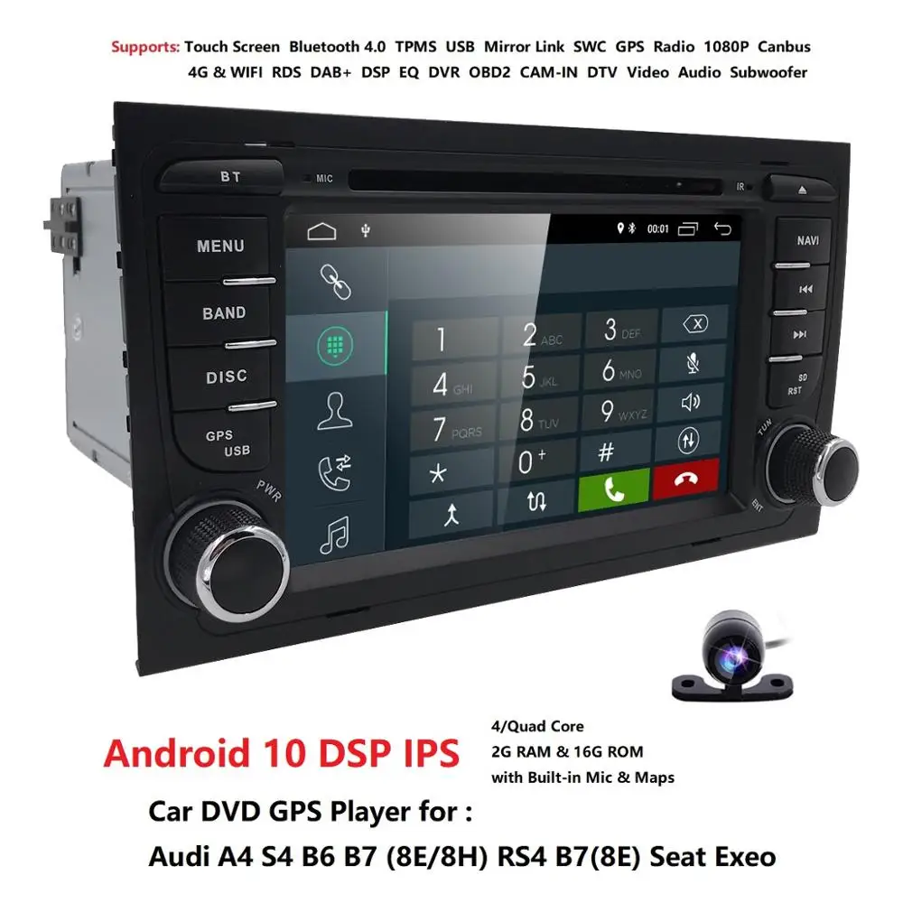 Android 10 4G Автомобильный GPS для Audi A4 B6 B7 S4 B7 B6 RS4 B7 SEAT Exeo dvd-плеер Радио Стерео IPS экран Мультимедиа автонавигация