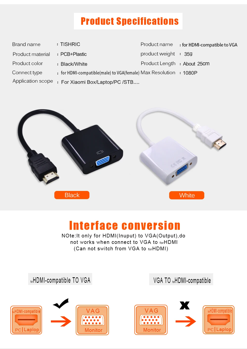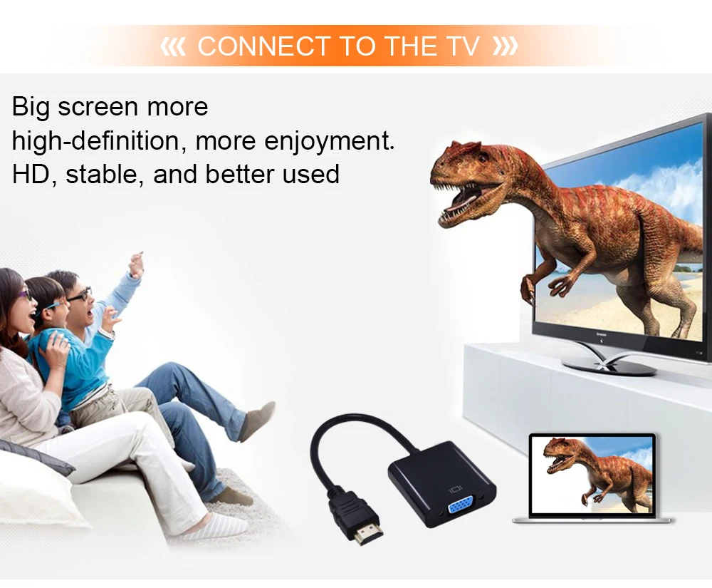 Переходник HDMIVGA TISHRIC, 1080P, цифро-аналоговый, штекер-гнездо, для ПК, ноутбука, ТВ-приставки, проектора