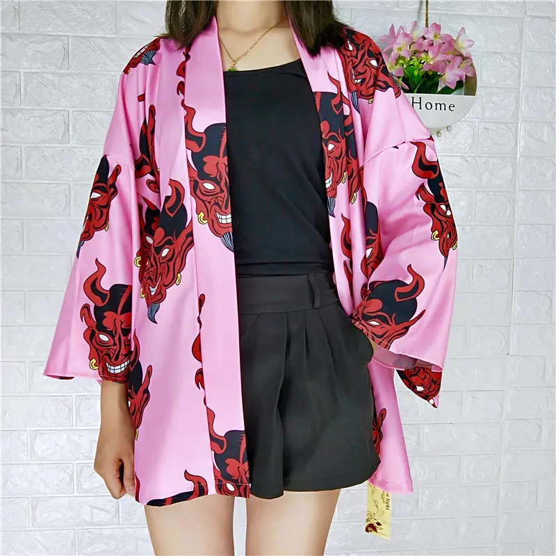 Woherb Harajuku кимоно, кардиган с принтом японский мультфильм 2021 летние блузы свободного покроя размера плюс рубашка уличная Camisas Mujer 21004