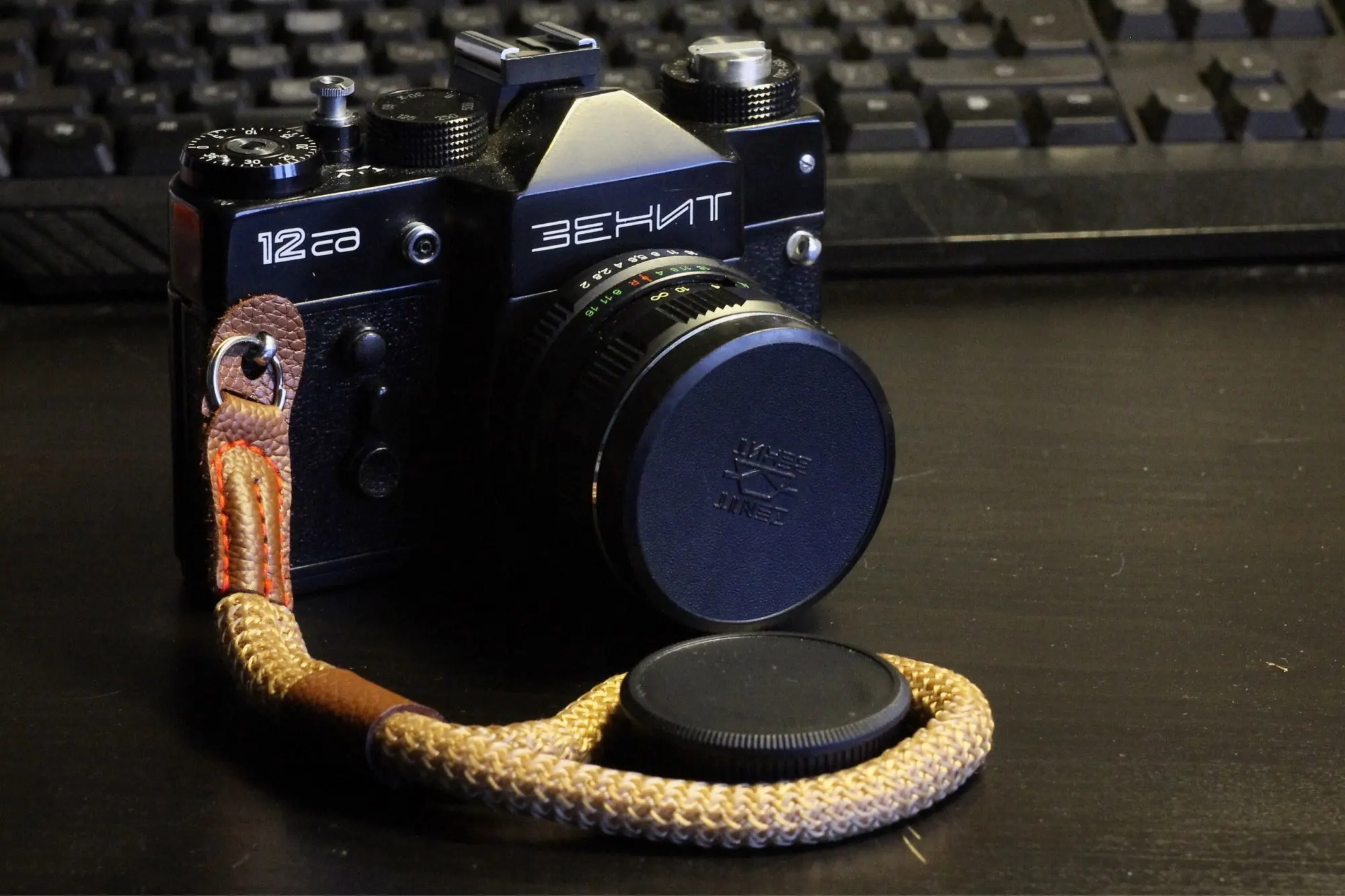 Бесспорно ремешок выглядит СУПЕР стильно. Но, блин, тянется. Точнее пружинит. Для меня это критично, ибо Зенит 12 нифига не лёгкий и растягивает эту верёвочку без особых проблем. Хотя для современных беззеркалок должно быть не так плохо.