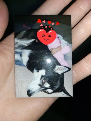Это потрясающе! Качество печати на самом деле очень хорошее (вспышка не делает это правильно). После того, как вы покупаете магнит, просто отправьте изображение, которое вы хотите на нем продавцу, и оно сделано быстро! Очень рад, это хорошая идея подарка