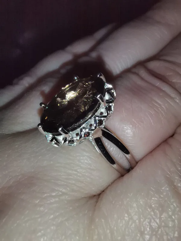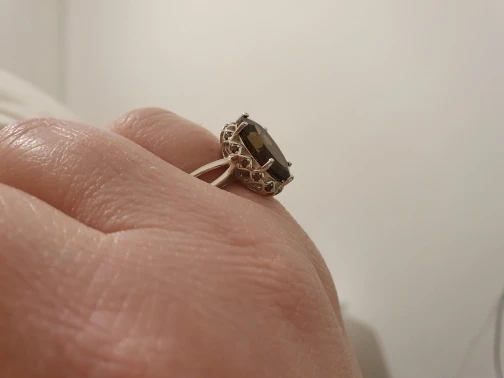 Кольцо очень красиво смотрится, оно не слишком большое, но и не маленькое.Камень красивой огранки, и само кольцо сделано очень аккуратно.На изделии стоит проба серебра.Спасибо магазину за очень качественный товар.