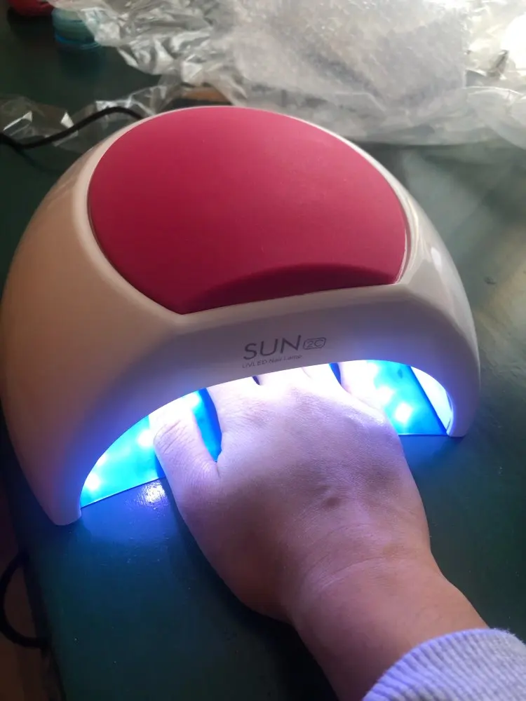 лампа пришла без коробки, в воздушном пакете. ждала почти 2.5 месяца до Минска. написала продавцу , был любезен и помог определить нахождение посылки. лампа без проблем просушила акригель и плотные цвета. прошлая моя лампа (sun 9c) была менее мощной. работает режим понижений мощности(видно ,что диоды менее яркие, но присутствует жужжание ). провод блока питания достаточно короткий 105 см. дно на магнитах , заклеено с двух сторон пленкой от царапин. брала за 13 с копейками долларов с купонами на 11.11. дополнительных подушечек как в оригинале нет. продавец положил маленькую пилочку в подарок. за эти деньги , определенно рекомендую.