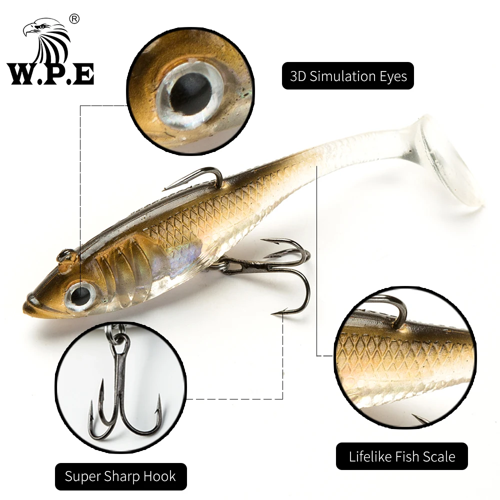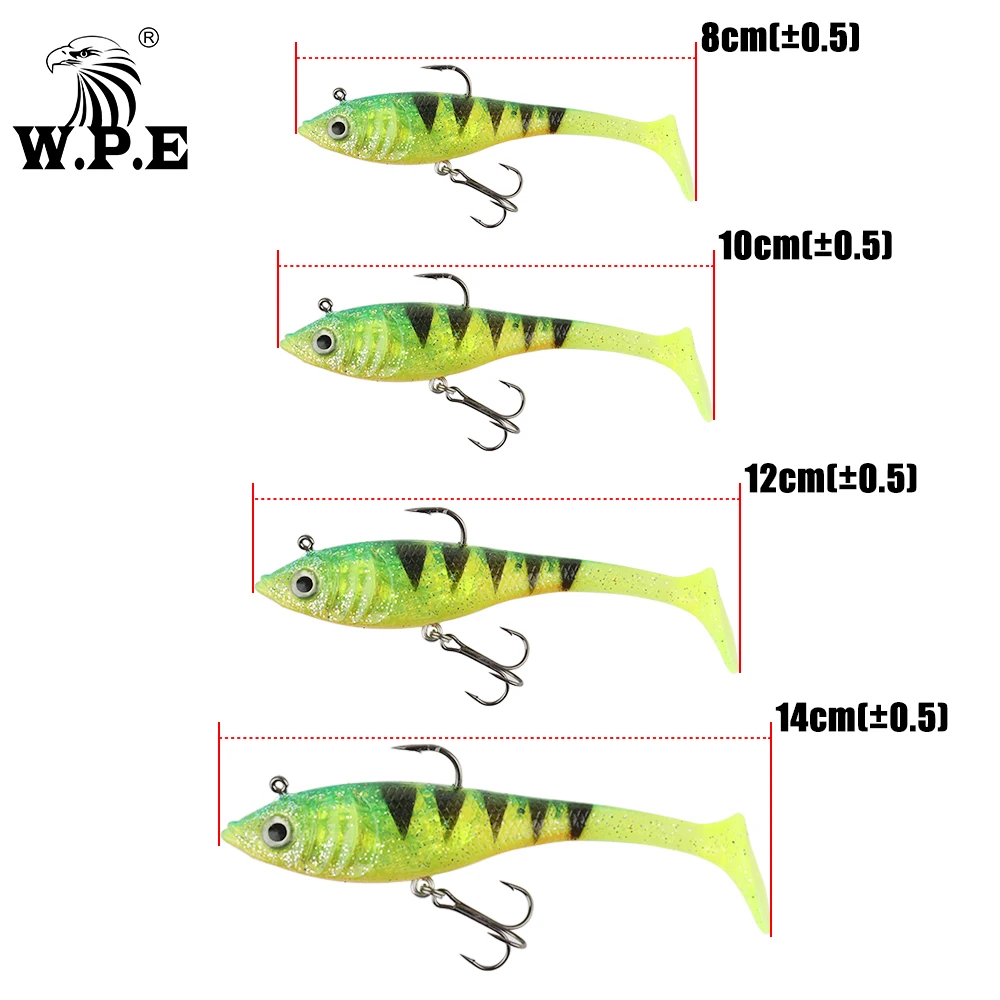 W.P.E брендовая свинцовая лампа, 8 см10 см12 см14 см, 1 шт., рыболовная мягкая свимбейт, искусственная кожа и одиночный крючок для ловли карпа