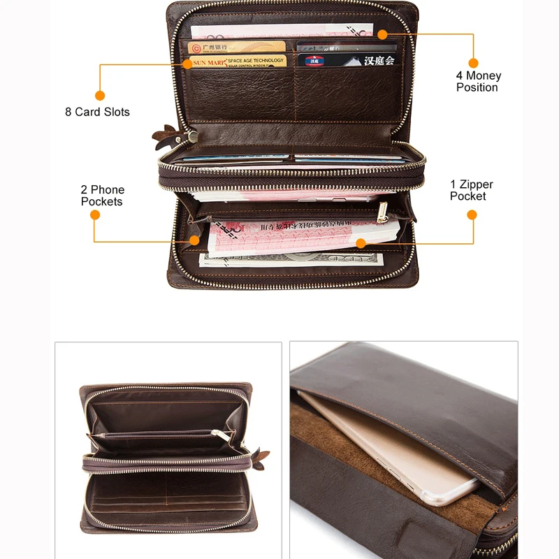 Мужской клатч из натуральной кожи, с лазерной гравировкой