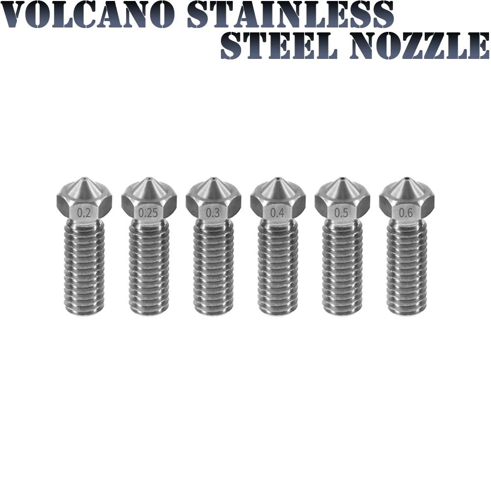 Цельнометаллические сопла Volcano из нержавеющей стали для 3D принтера 0,2 мм-1,2 мм для удлинения 1,75 мм, сопла M6 для Sidewinder X1