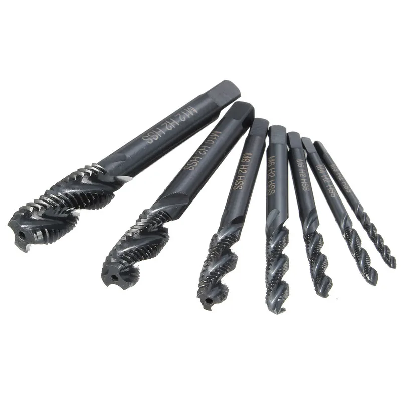 7 шт. M3 M4 M5 M6 M8 M10 M12 HSS с покрытием из нитрида винтовой кран метрический правый спиральный кран с винтовой резьбой ручные инструменты высокое качество