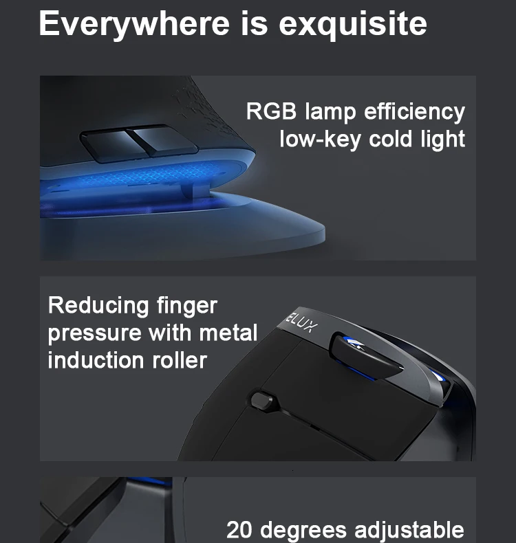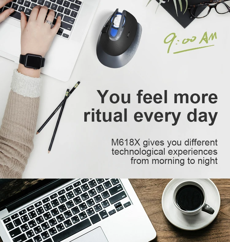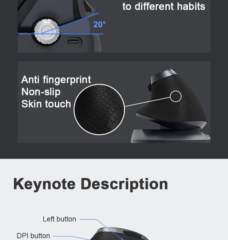 Delux M618X может быть отрегулирован от 53 ° до 73 °, для естественного положения рукопожатия и комфорта.