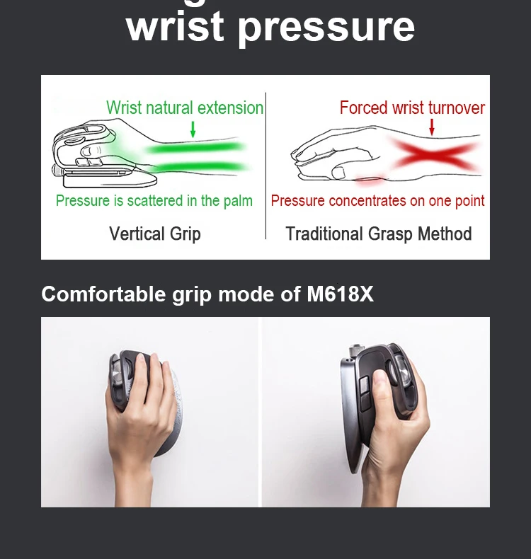 Эргономичная Вертикальная мышь помогает уменьшить давление и боль, вызванные использованием традиционной мыши.