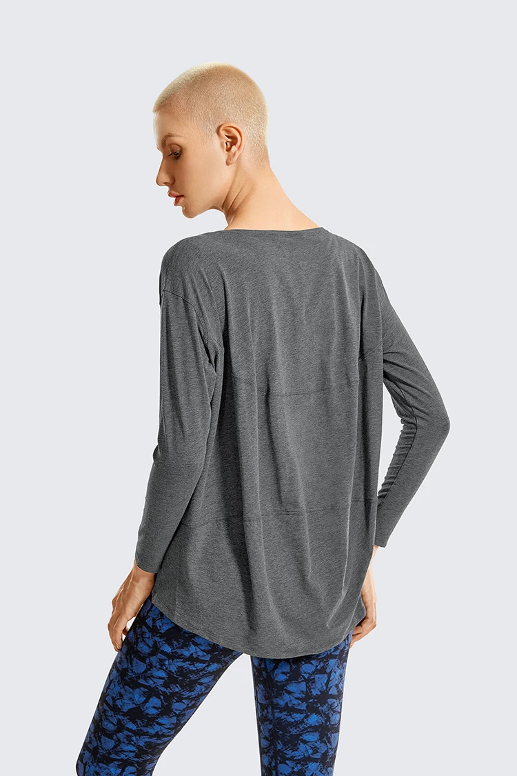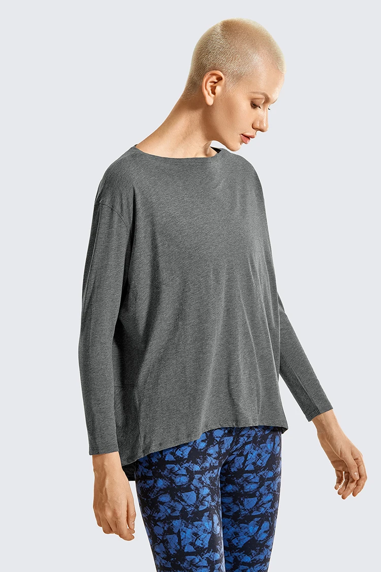 SYROKAN Женский Повседневный Топ с длинным рукавом из хлопка футболка для тренировок спортивный топ с вырезом лодочкой