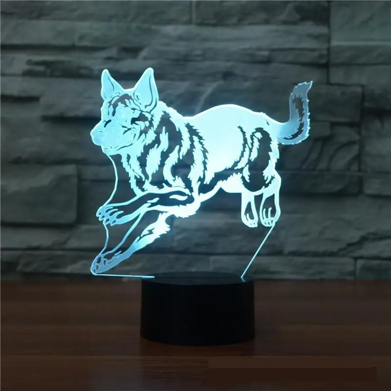 Светодиодные 3d светильники в виде немецкой овчарки, цветные лампы 3d с сенсорным управлением, постепенный светодиодный ночник, 3d лампа