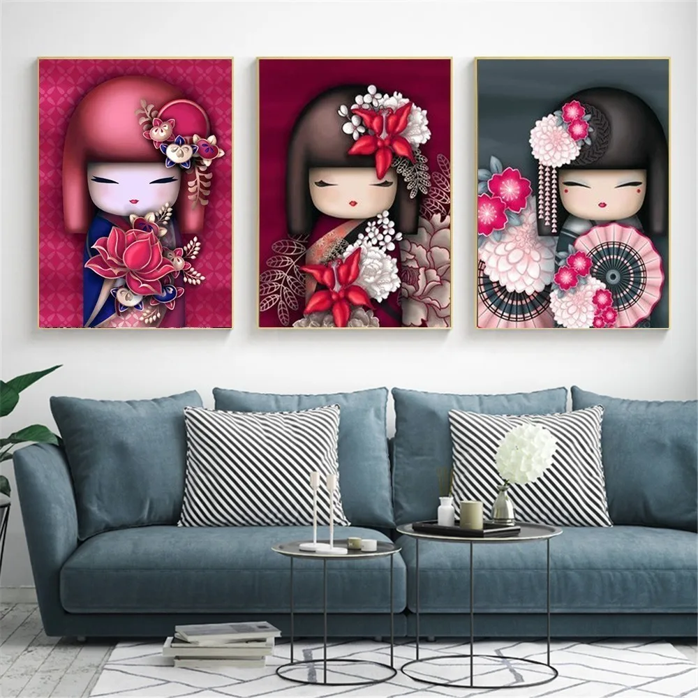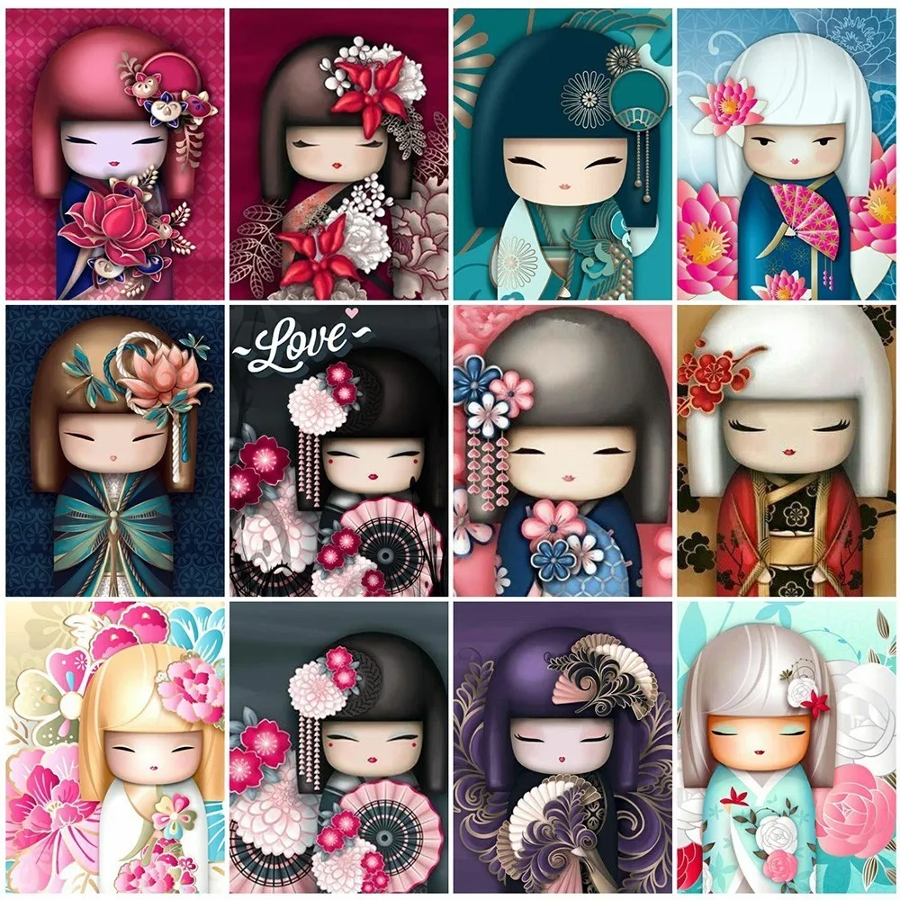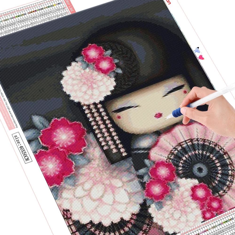 HUACAN Алмазная картина с мультяшным рисунком, полностью квадратные японские куклы, 5d алмазная вышивка, рукоделие, картина, стразы, мозаика